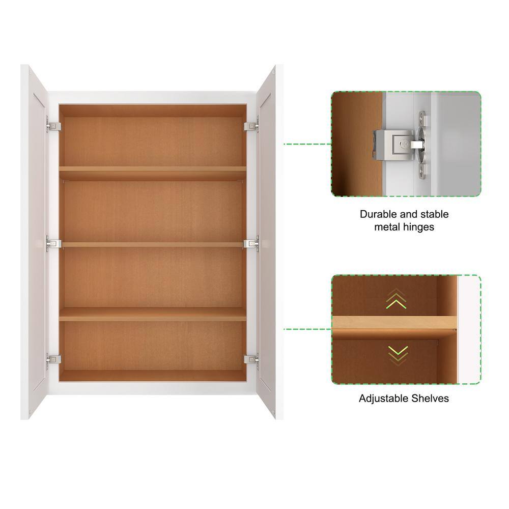 36 in. W x 12 in D x 42 in. H in. Traditional White Plywood Ready to Assemble Kitchen Wall Cabinet with Doors, Shelves