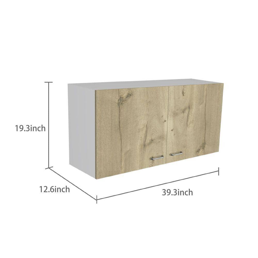 Amucolo 39.3 in. W x 12.6 in. D x 19.3 in. H White and Light Oak Wood Ready to Assemble Wall Kitchen Cabinet with Double Doors