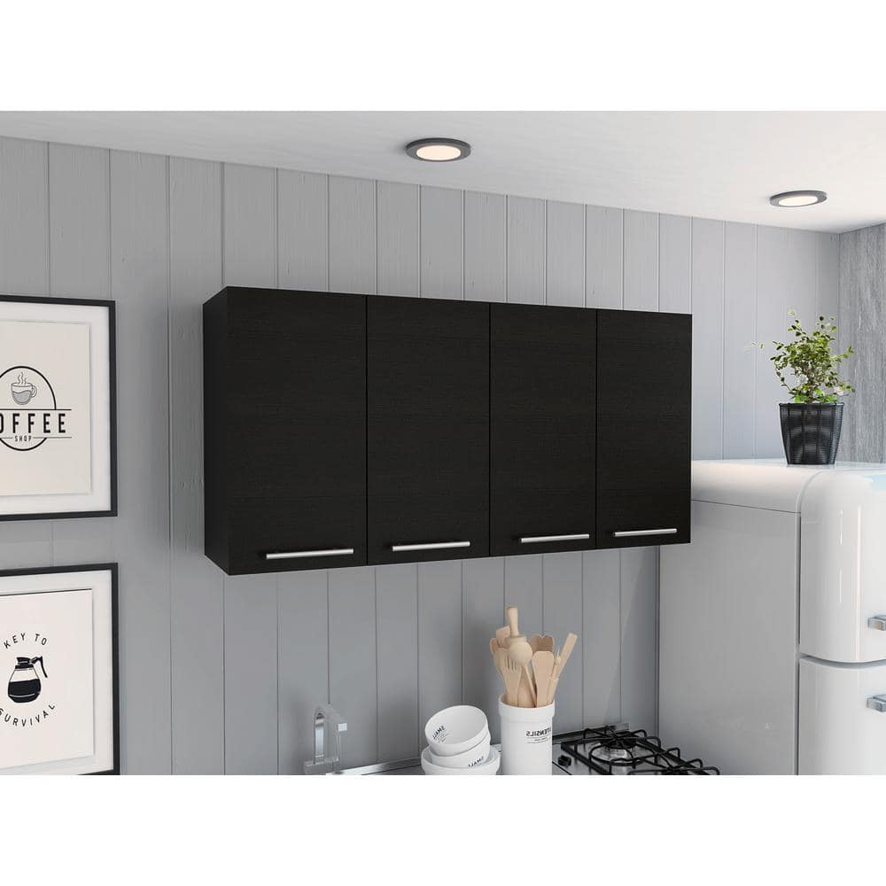 Aoibox 13.1-in W x 47.2-in D x 23.6-in H Particle Board Ready to Assemble Upper Wall Mounted Double Kitchen Cabinet in Black