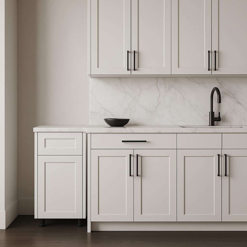 The Cambridge Everest White Shaker Base Cabinet is a masterpiece of modern design, blending sleek lines with a matte white finish to create a sophisticated look. Its frameless construction and soft-close features ensure both style and functionality. Pair it with marble countertops and stainless steel appliances for a chic, contemporary kitchen that exudes luxury.