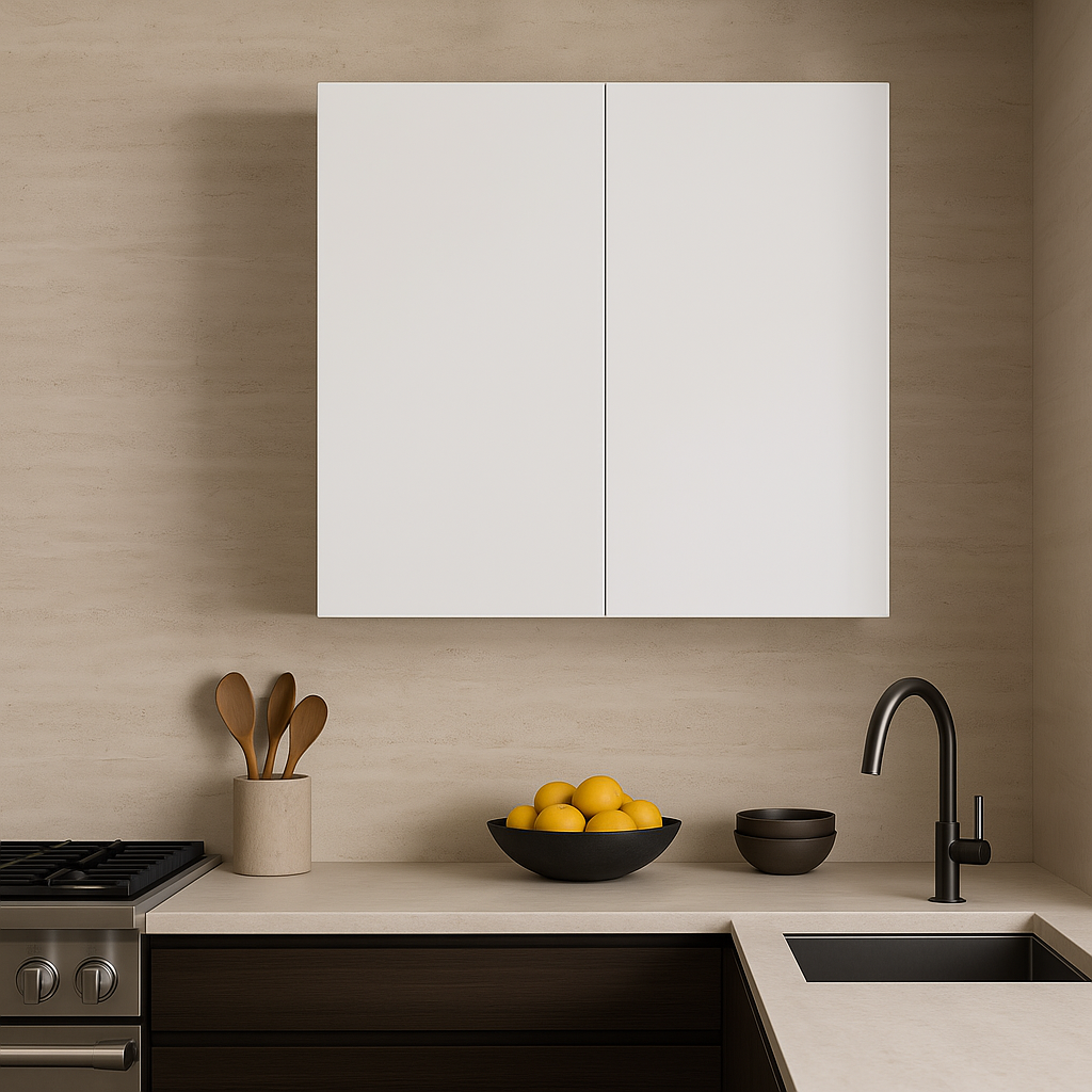 The Cambridge Radiance kitchen cabinet combines modern design with functionality, featuring a frameless construction and a high-gloss white finish. Its adjustable shelves and soft-close doors ensure convenience and durability, making it a perfect addition to any kitchen.
