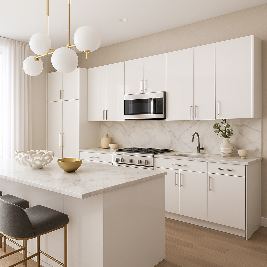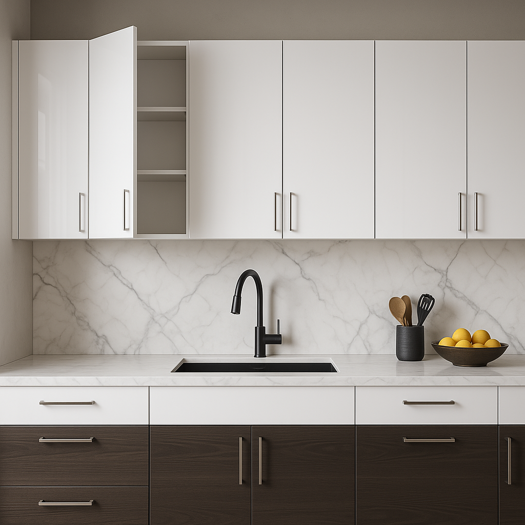 The Cambridge Radiance kitchen cabinet combines modern design with practical functionality. Featuring a frameless construction and high-gloss white finish, it offers adjustable shelves and soft-close doors for a sleek and efficient kitchen setup.