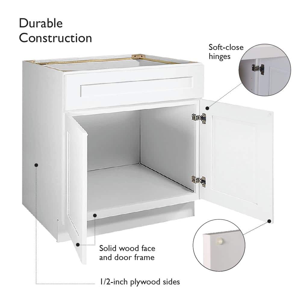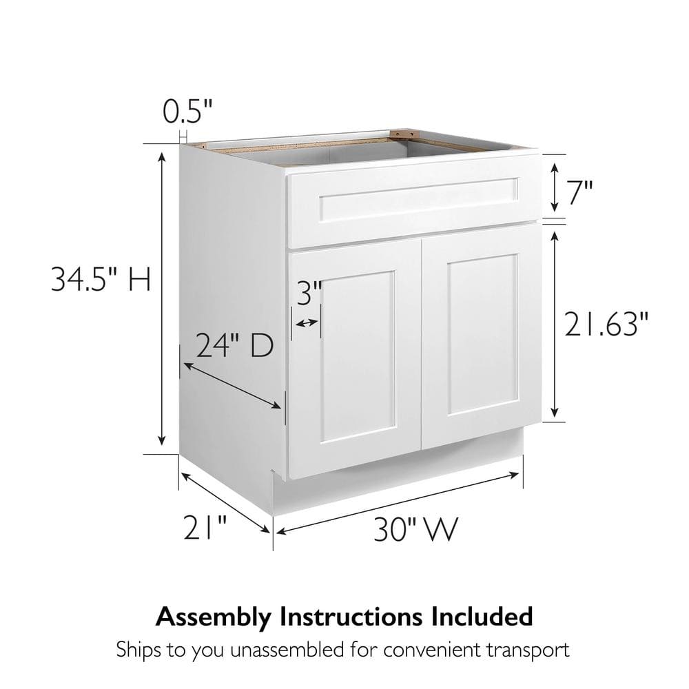 Design House Brookings Plywood Ready to Assemble Shaker 30x34.5x24 in. 2-Door Base Kitchen Cabinet Sink in White