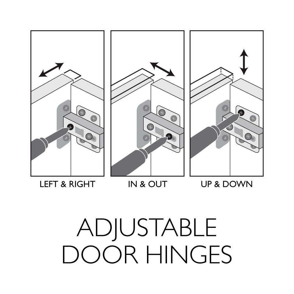 A: Yes, the cabinet includes 6-way adjustable soft-close hinges to ensure a quiet and gentle close.