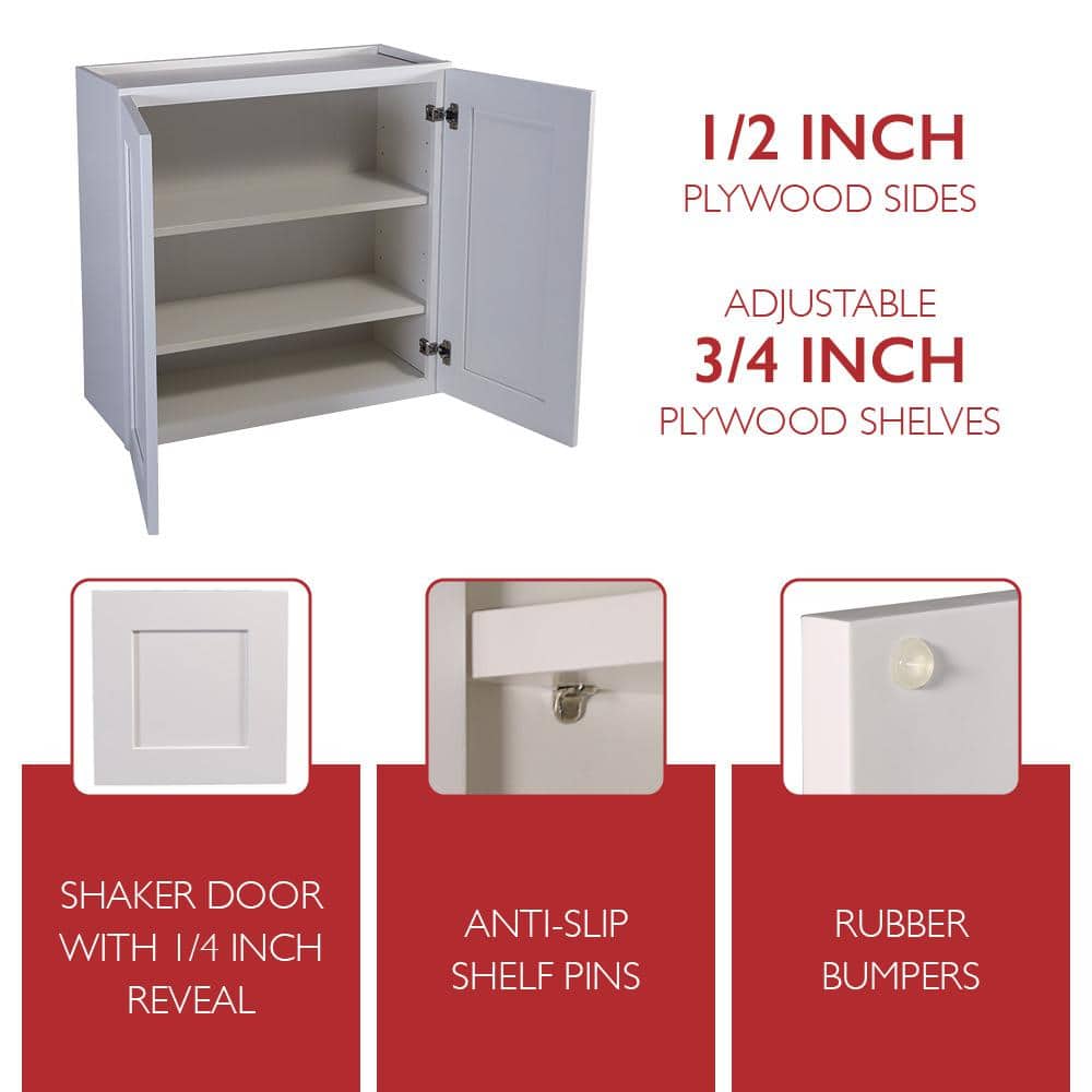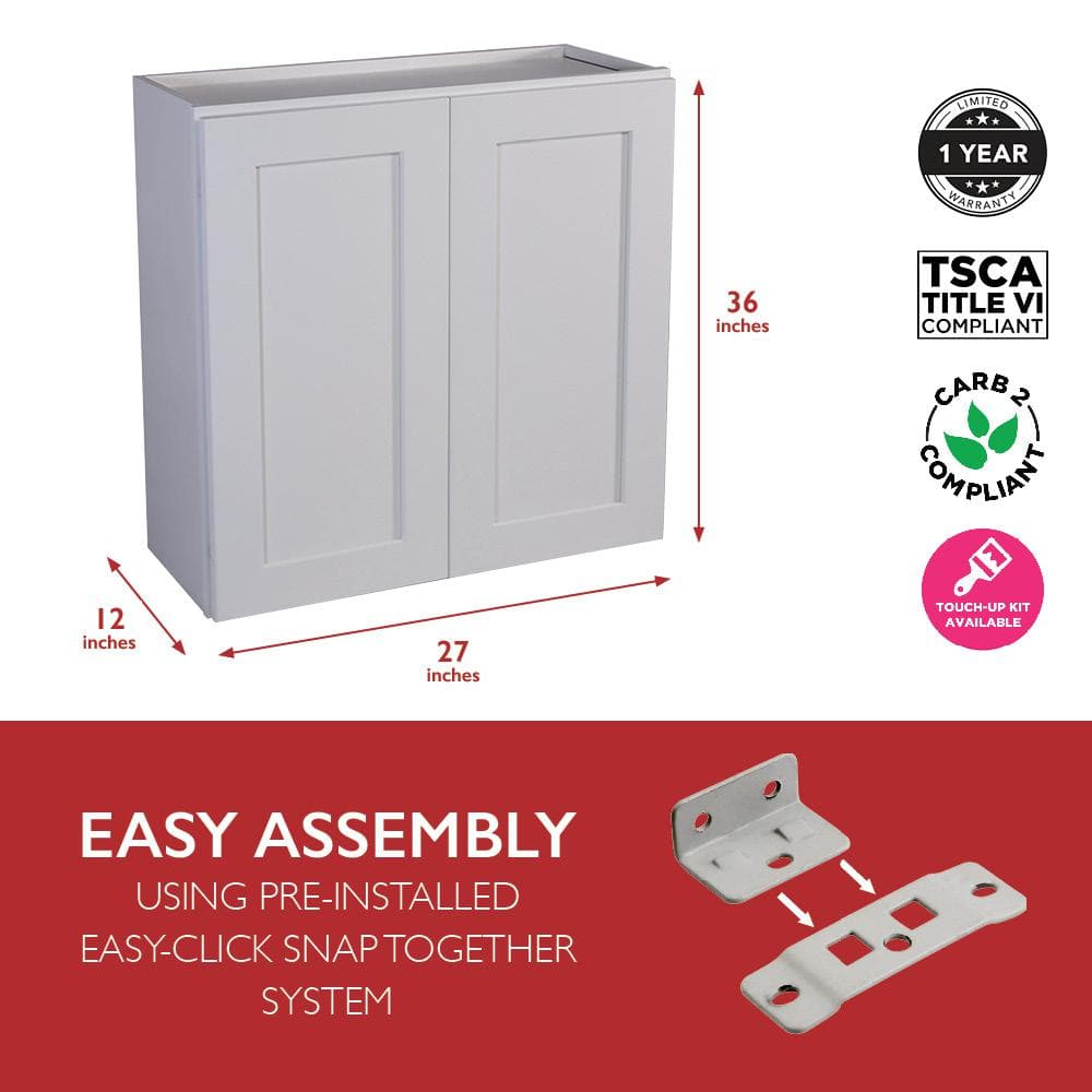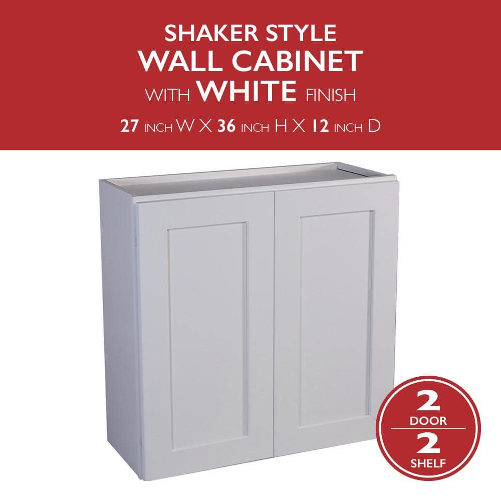 Design House Brookings Solid Wood Ready to Assemble Shaker 27 in. x 36 in. x 12 in. 2 Door Wall Kitchen Cabinet W2736 in White