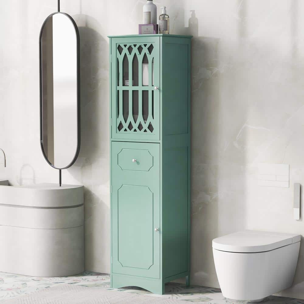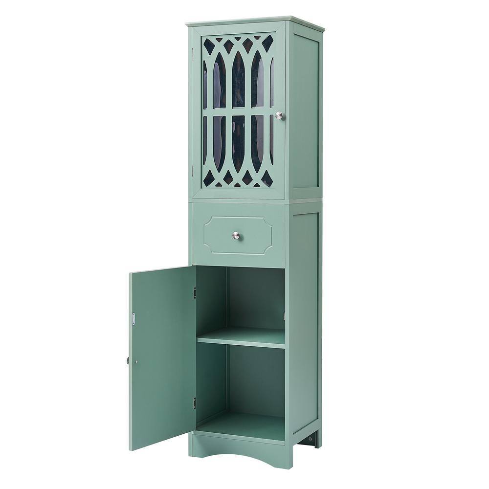 FUNKOL 14.2 in. W x 16.5 in. D x 63.8 in. H Ready to Assemble Floor Base Kitchen Cabinet in Green with 2-Doors and 1-Drawer