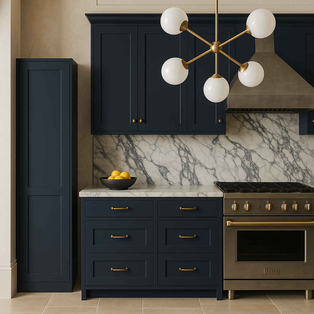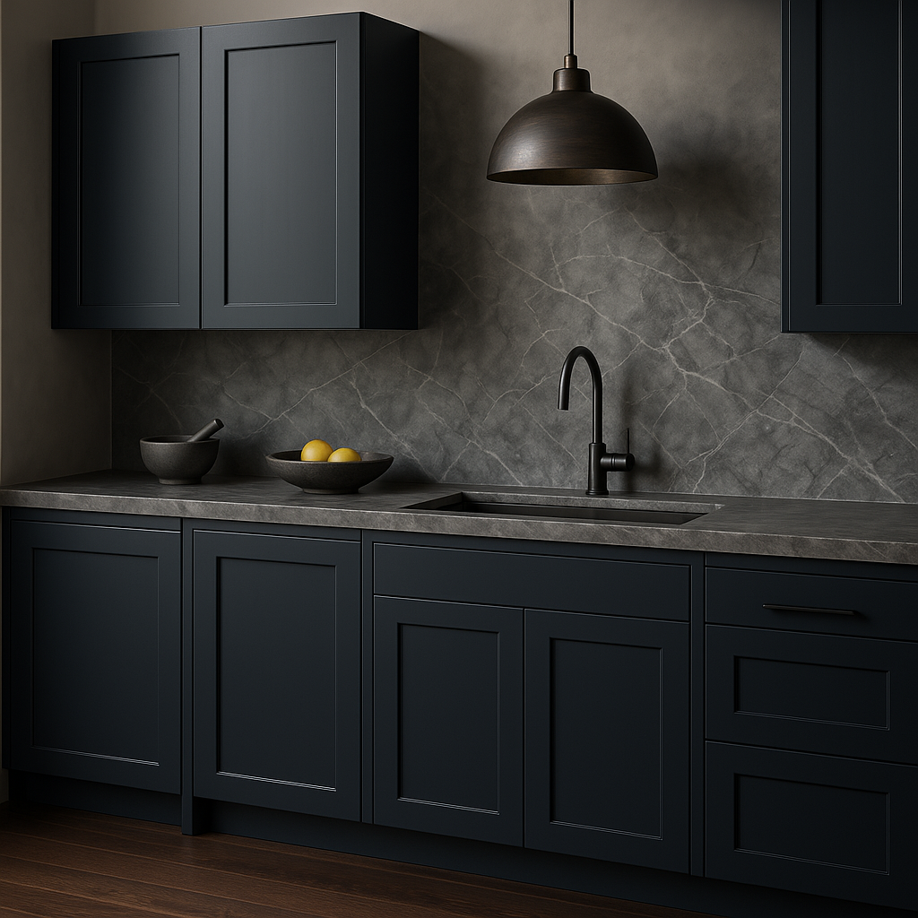 - Timeless Design: Shaker-style door with a painted ink blue finish.