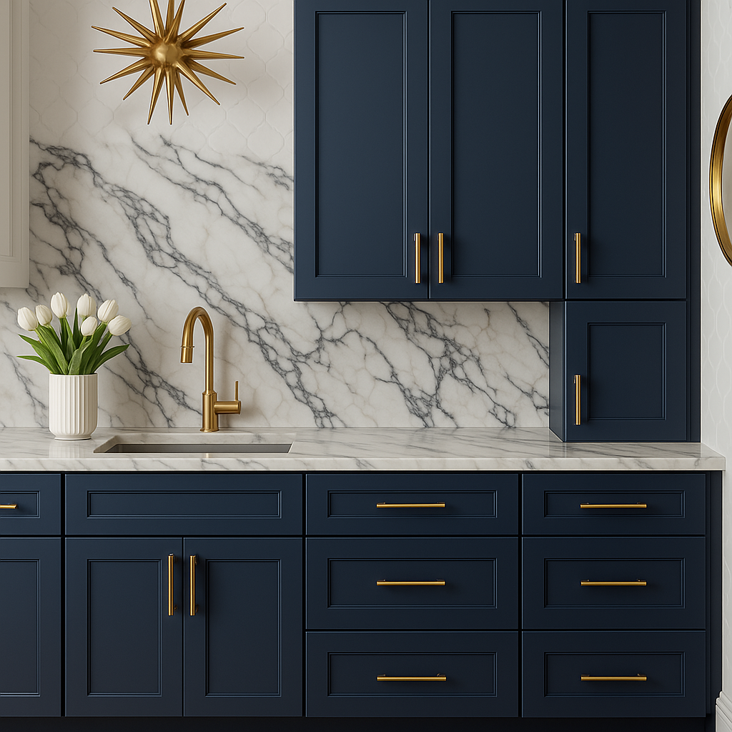 - Stylish Design: Shaker-style door in ink blue complements various kitchen styles.