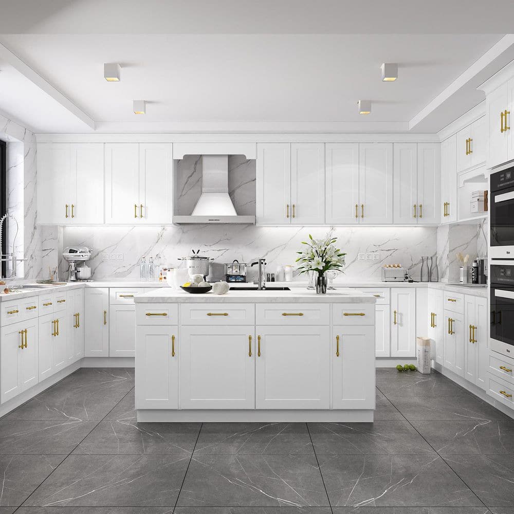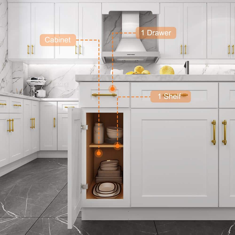 Transform your culinary space with the HOMEIBRO Shaker White Base Cabinet, where functionality meets sophistication. Its crisp white finish and elegant shaker design radiate a serene simplicity that effortlessly elevates any kitchen aesthetic. Imagine this versatile piece accented with brushed brass hardware, exuding warmth and charm. Essential for creating a harmonious and beautifully functional kitchen environment, this cabinet is a cornerstone of exquisite living.