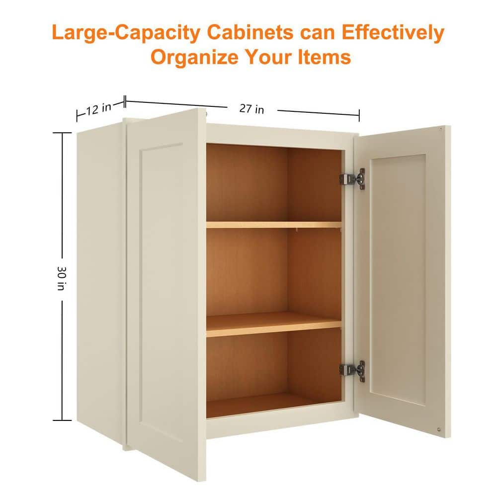 HOMEIBRO 27-in W X 12-in D X 30-in H in Shaker Antique White Plywood Ready to Assemble Wall Kitchen Cabinet