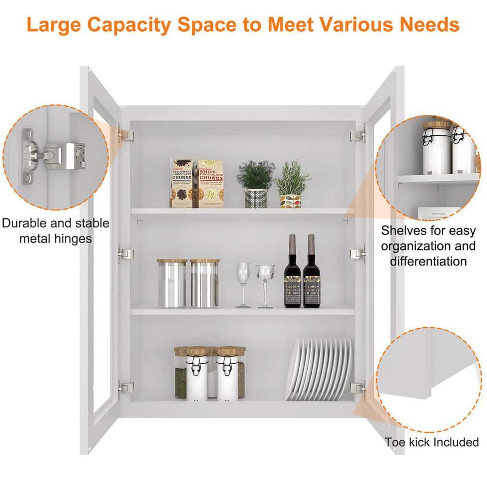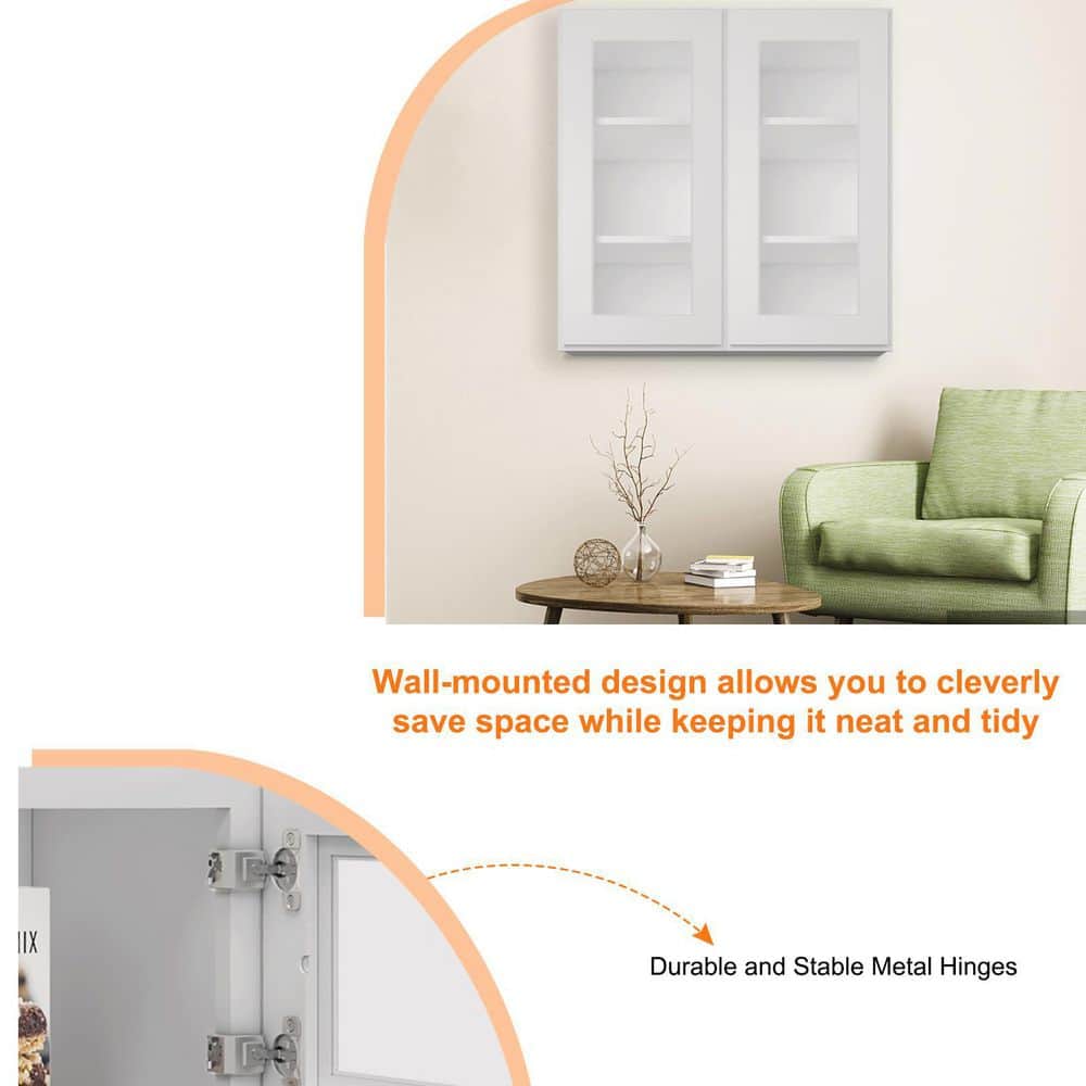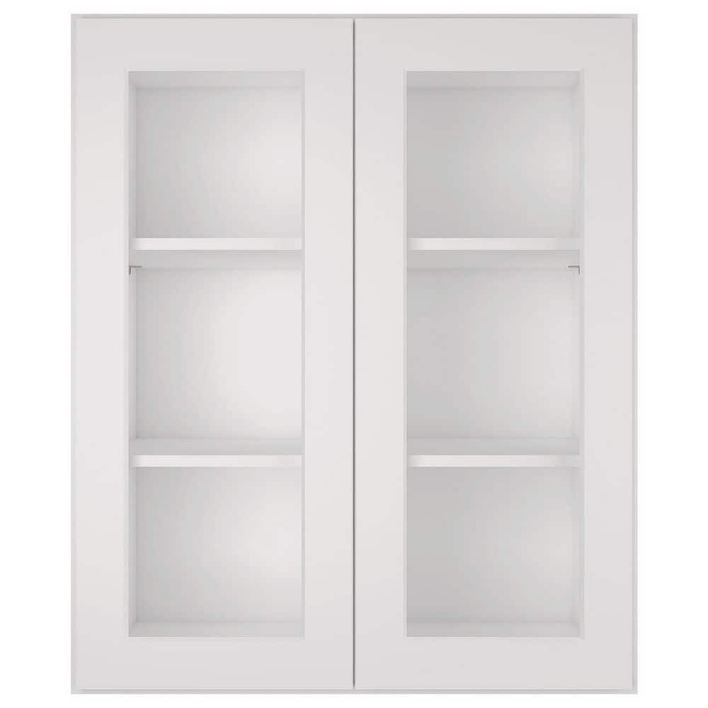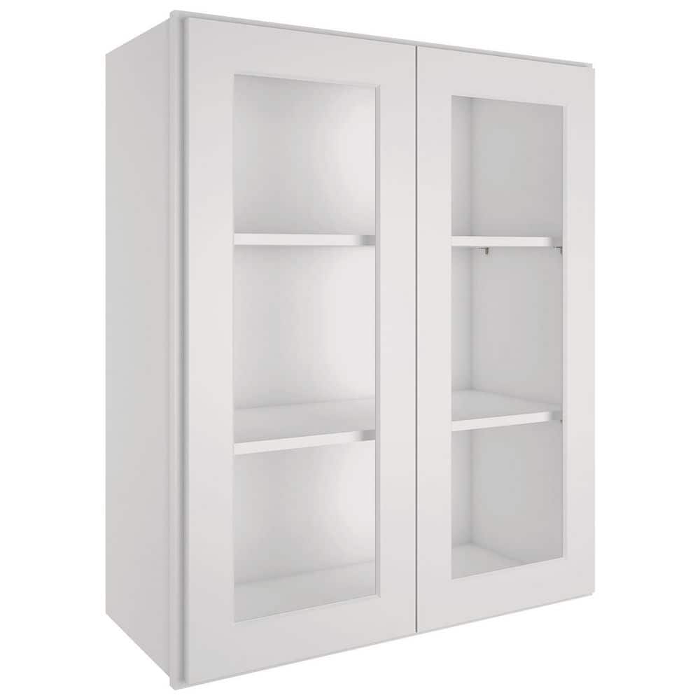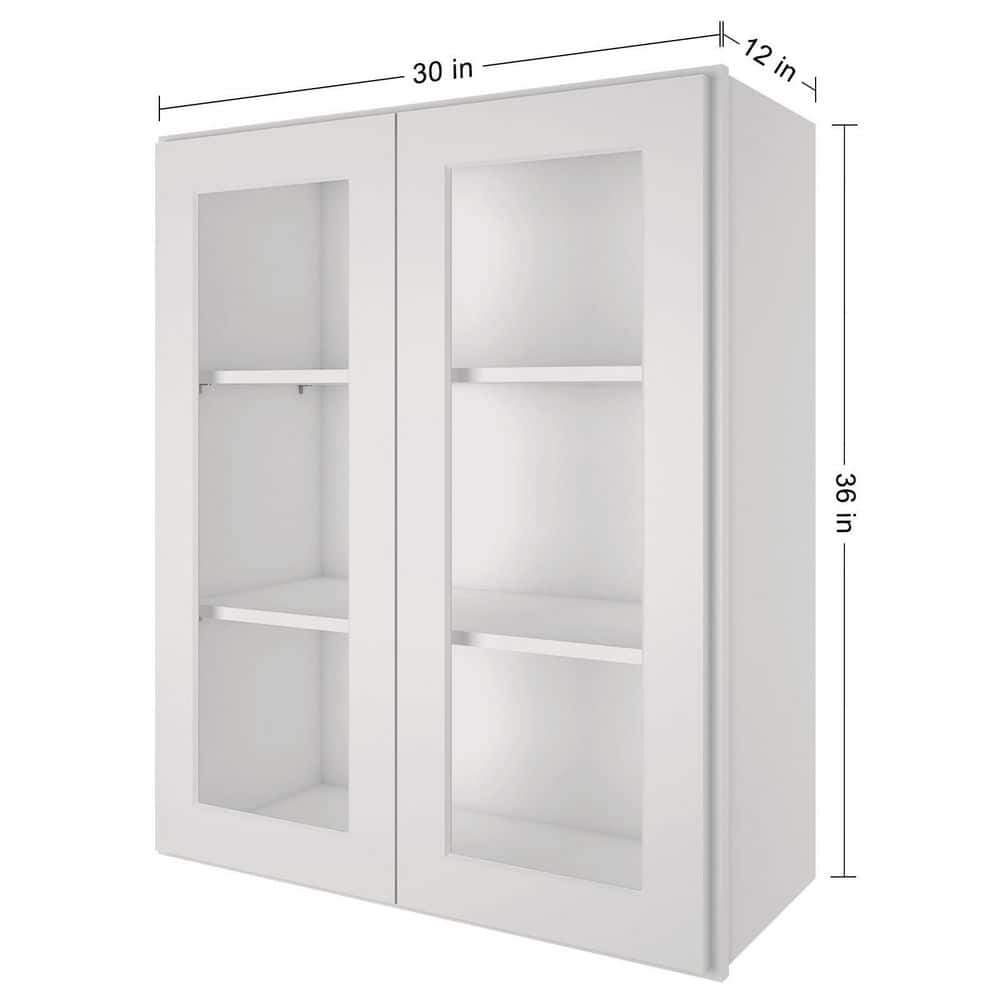 HOMEIBRO 30-in W X 12-in D X 36-in H in Shaker Dove Plywood Ready to Assemble Wall Glass kitchen Cabinet