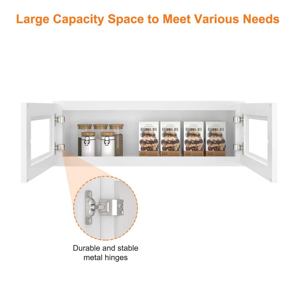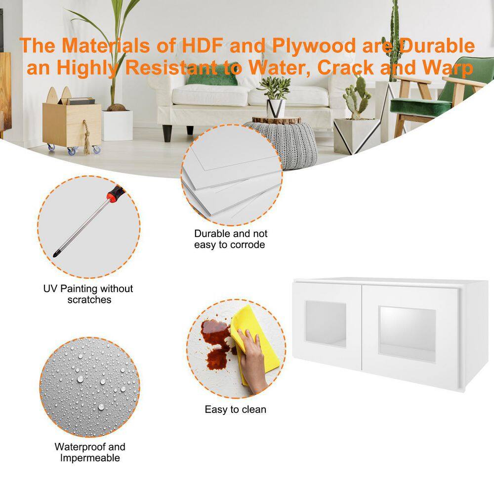 This HOMEIBRO 36-inch Shaker White wall kitchen cabinet combines style and function with its elegant design and durable construction. Made from high-strength HDF wood for the doors and stable plywood for the box, it ensures moisture resistance and long-lasting service. Featuring soft-close hinges, this ready-to-assemble cabinet is perfect for enhancing any kitchen, laundry, or bathroom space.