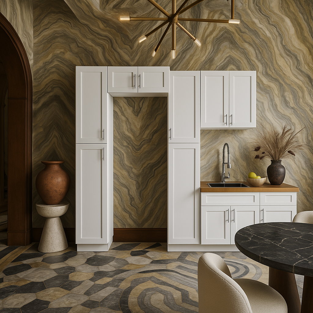 The MILL'S PRIDE Richmond Verona White Shaker Cabinet Set offers a quick assembly solution for your laundry room or kitchen. Featuring durable plywood construction, soft-close doors, and a sleek Verona White finish, this set combines style and functionality.