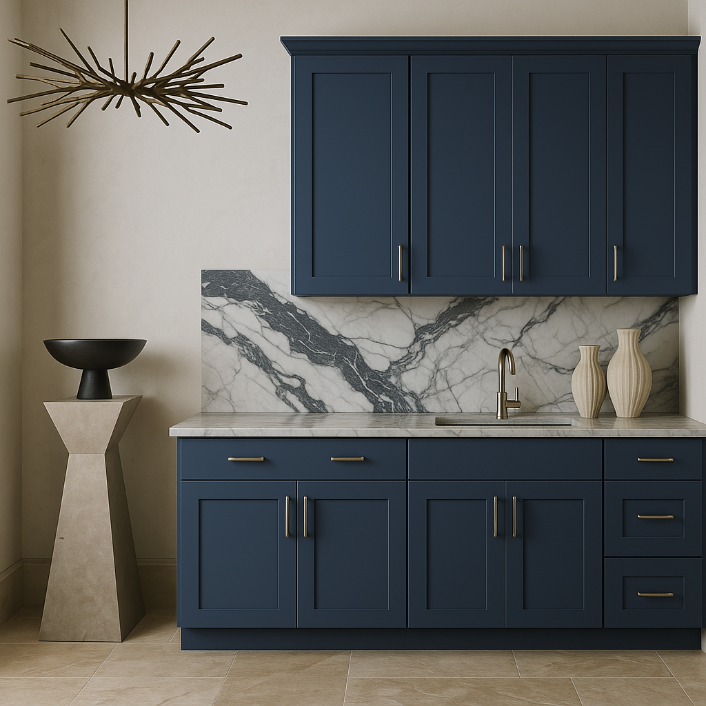 • Elegant Design: Valencia Blue finish with shaker-style MDF doors.