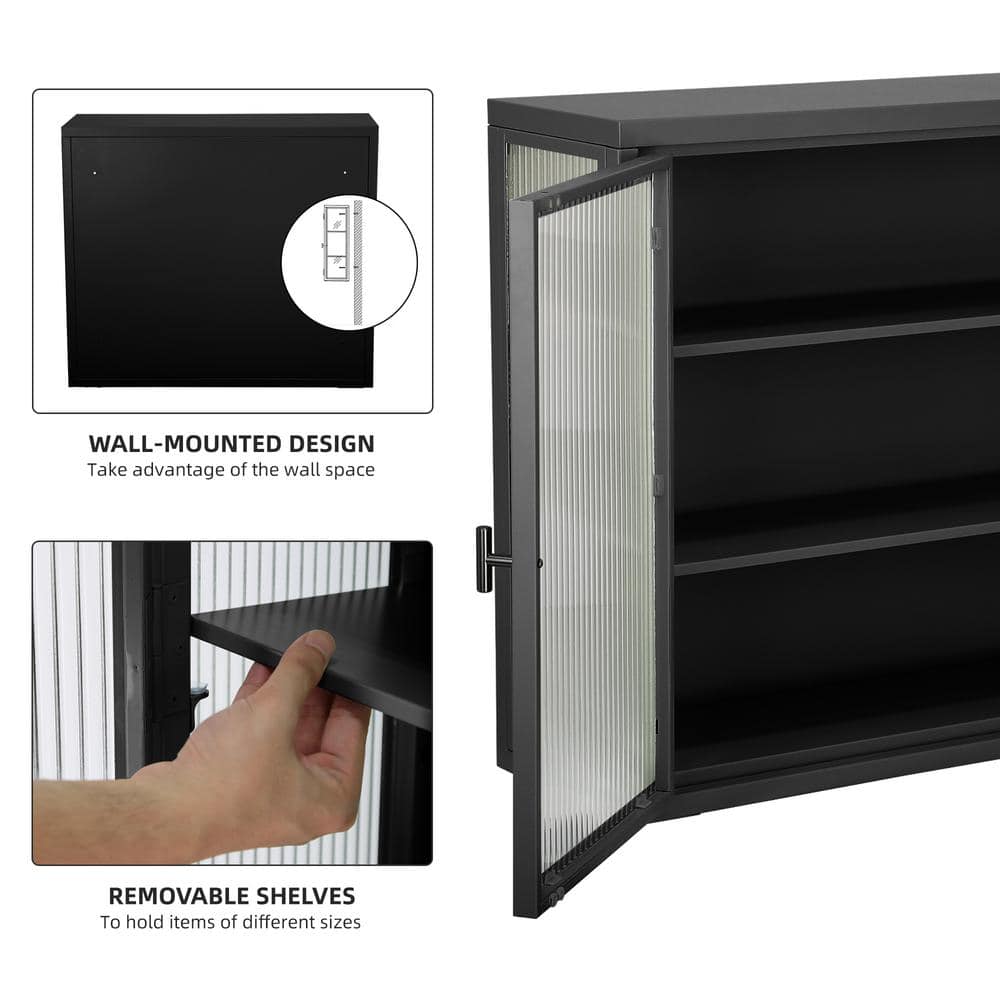 Nivencai Black Metal Wall Kitchen Cabinet with Detachable Shelves