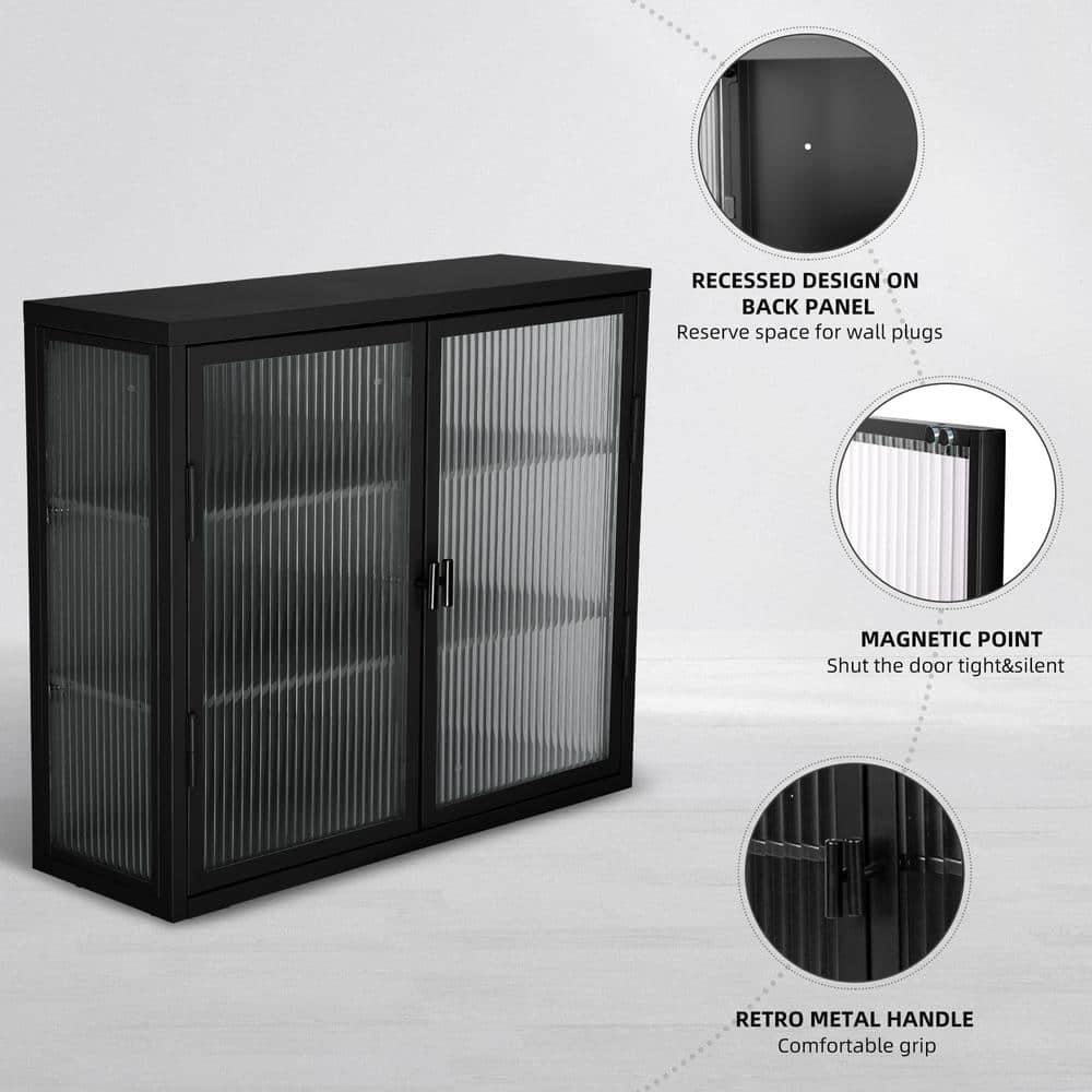 Transform any room with the understated sophistication of this Nivencai Cabinet. Its sleek black metal finish and fluted glass doors exude a timeless elegance, while the adjustable shelving caters to a myriad of storage needs. Imagine this cabinet not just as storage, but as an artful display piece for your finest serveware or beloved collectibles. An essential for luxurious living, it effortlessly blends form and function for a seamless decorator’s dream.