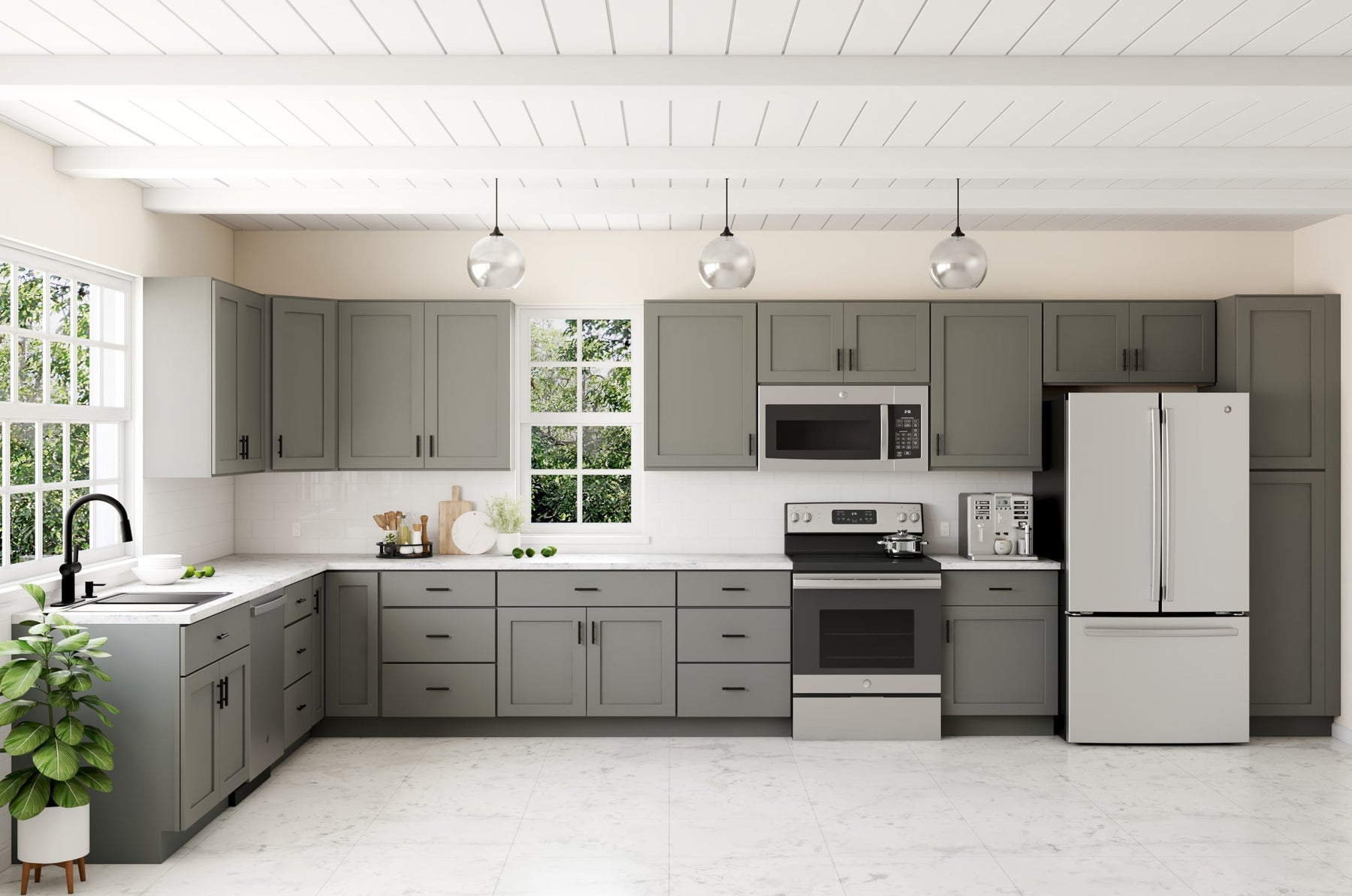 Transform your space with the RELIABILT Overlake Corner Cabinet, a masterpiece of function meeting stunning design. Artfully constructed with recessed panel Shaker doors swathed in a serene matte gray, it promises a timeless allure that captivates. Imagine it nestled in a sun-drenched corner, complementing lush, bold-hued ceramic tiles for a look that breaks conventions and elevates creativity. This cabinet is not just storage—it's an essential statement of luxury, exemplifying refined living.