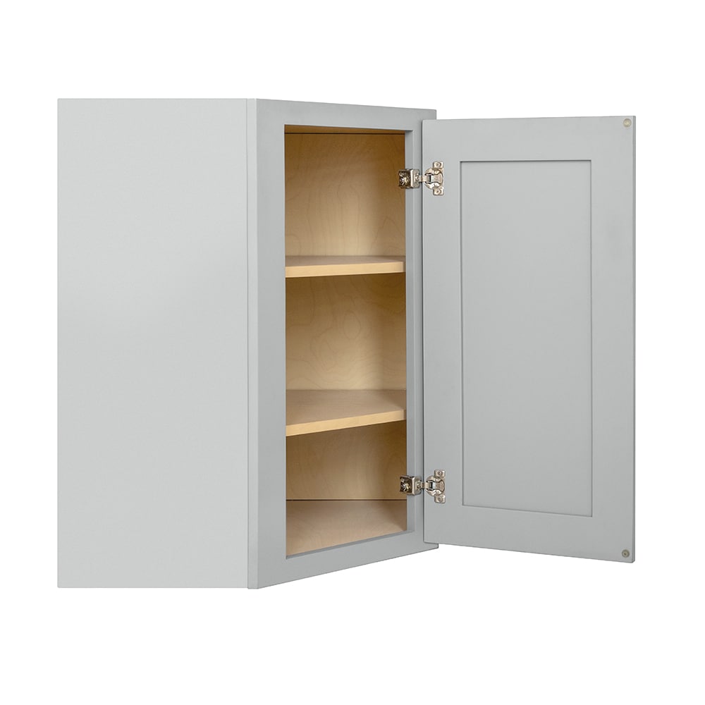 Elevate your space with the RELIABILT Overlake Diagonal Corner Wall Cabinet. This ready-to-assemble unit combines classic Shaker styling with a contemporary matte gray finish, making it an ideal pick for kitchens, bathrooms, or utility rooms. Crafted wholly from plywood, it boasts durable full-overlay doors and state-of-the-art soft-close hinges.