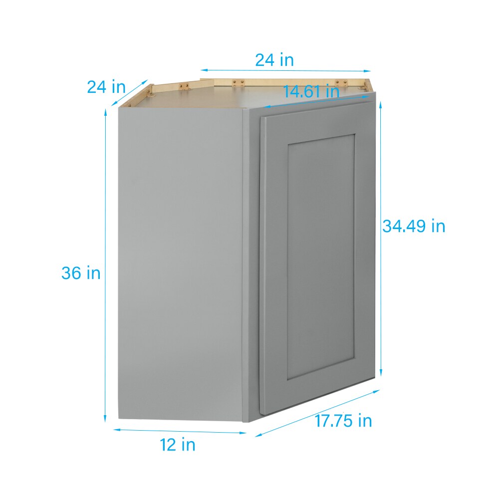 RELIABILT Overlake 24-in W x 36-in H x 24-in D Gray Diagonal Corner Wall Ready To Assemble Plywood Cabinet (Recessed Panel Shaker Style)