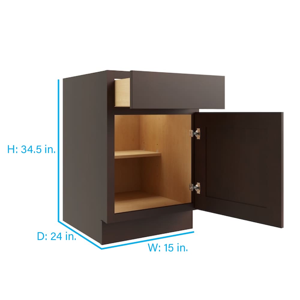 RELIABILT Parkstone 15-in W x 34.5-in H x 24-in D Espresso 1-Drawer Base Fully Assembled Plywood Cabinet (Flat Panel Shaker Style)