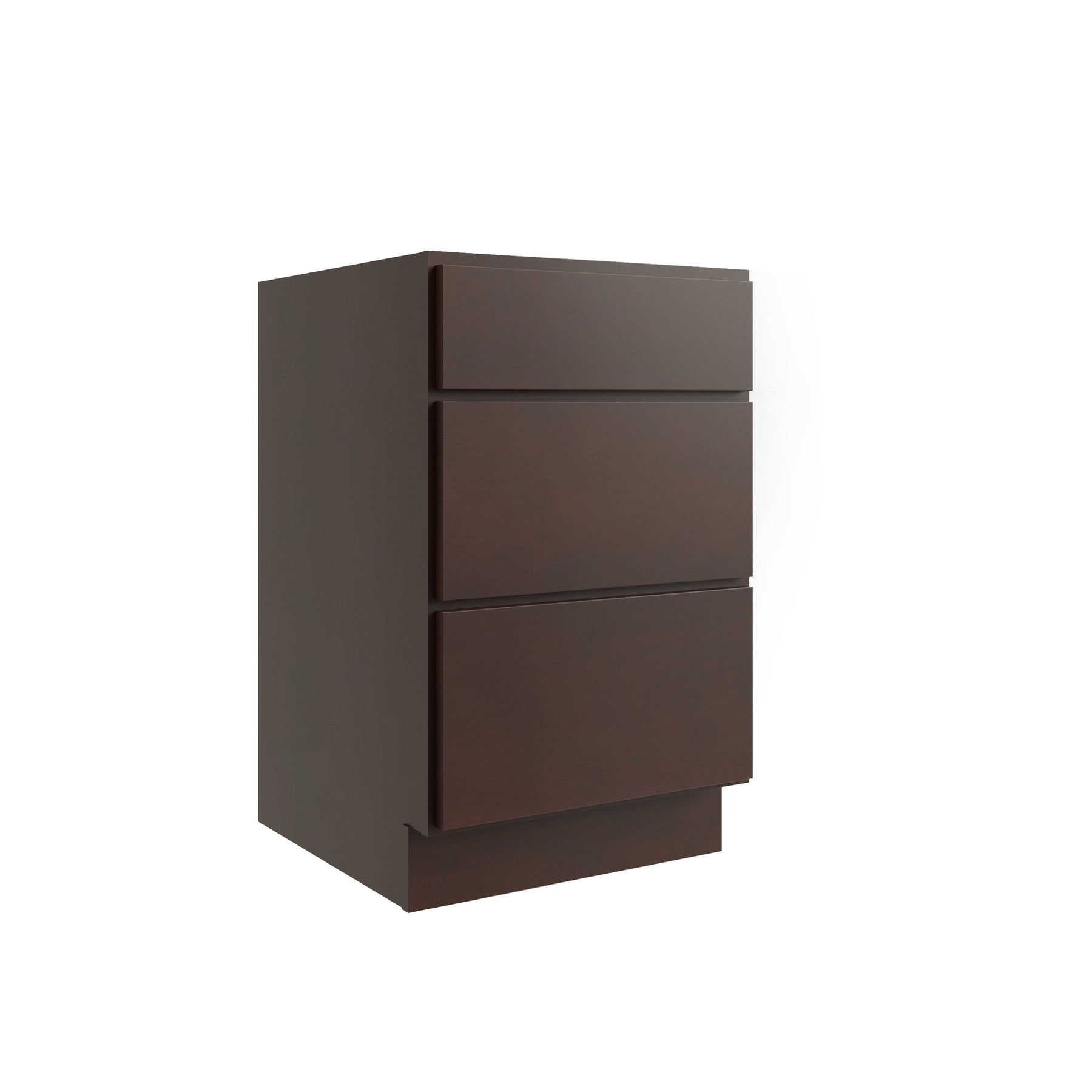 RELIABILT Parkstone 21-in W x 34.5-in H x 24-in D Espresso 3-Drawer Base Fully Assembled Plywood Cabinet (Flat Panel Style)