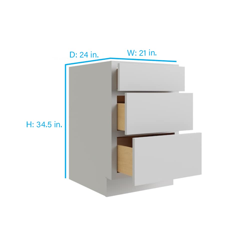 RELIABILT Parkstone 21-in W x 34.5-in H x 24-in D Grey 3-Drawer Base Fully Assembled Plywood Cabinet (Flat Panel Style)