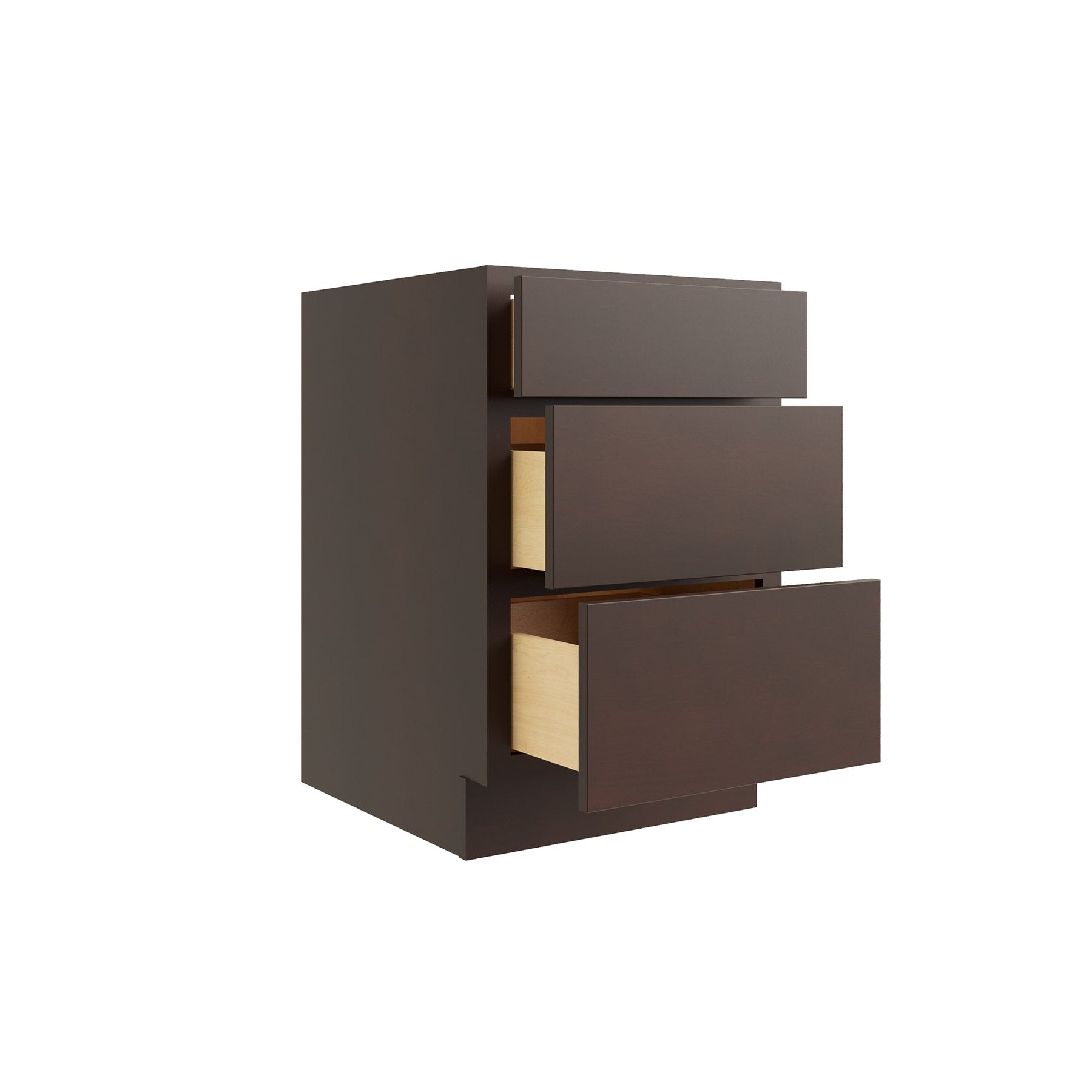 RELIABILT Parkstone 24-in W x 34.5-in H x 24-in D Espresso 3-Drawer Base Fully Assembled Plywood Cabinet (Flat Panel Style)