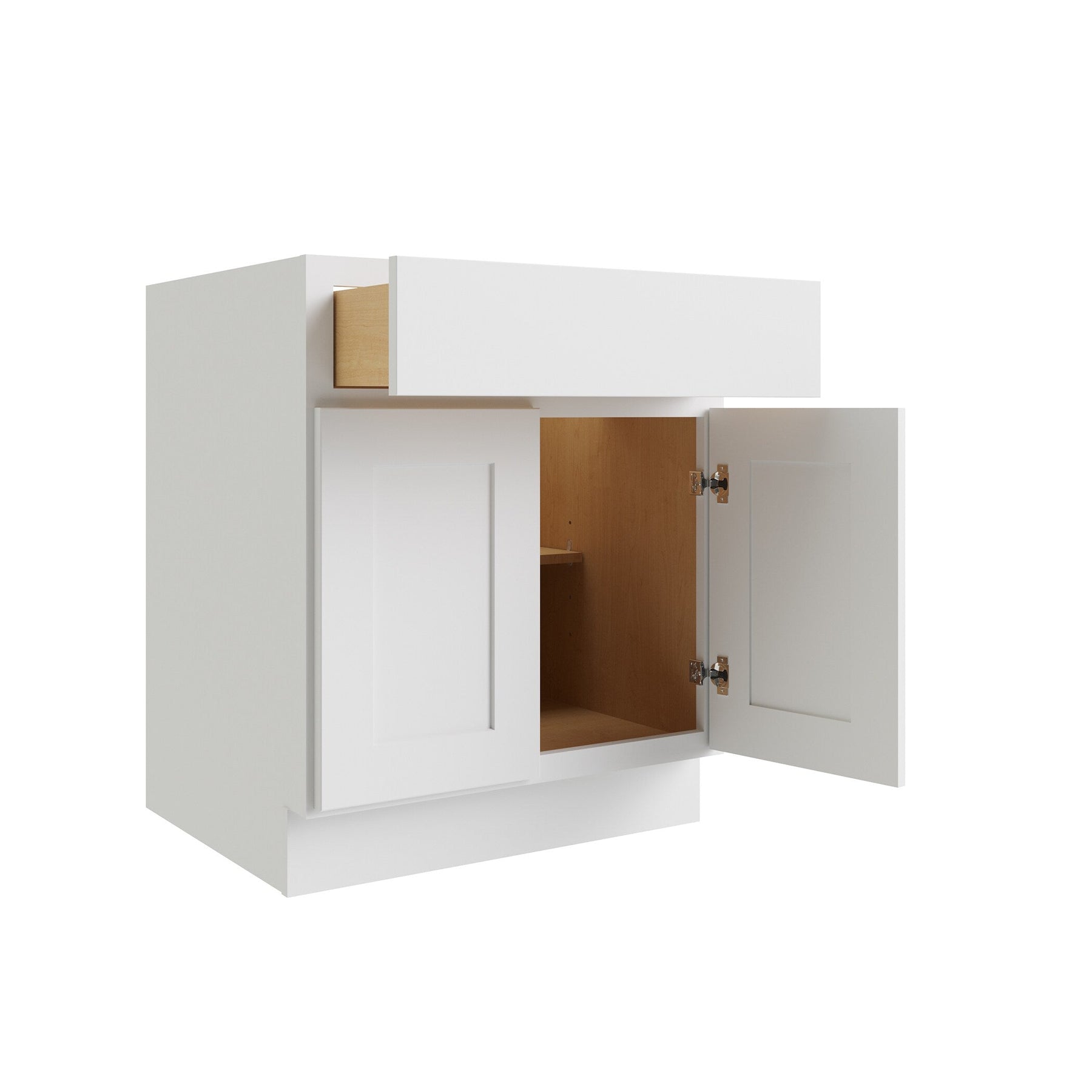 RELIABILT Parkstone 24-in W x 34.5-in H x 24-in D White 1-Drawer Base Fully Assembled Plywood Cabinet (Flat Panel Shaker Style)
