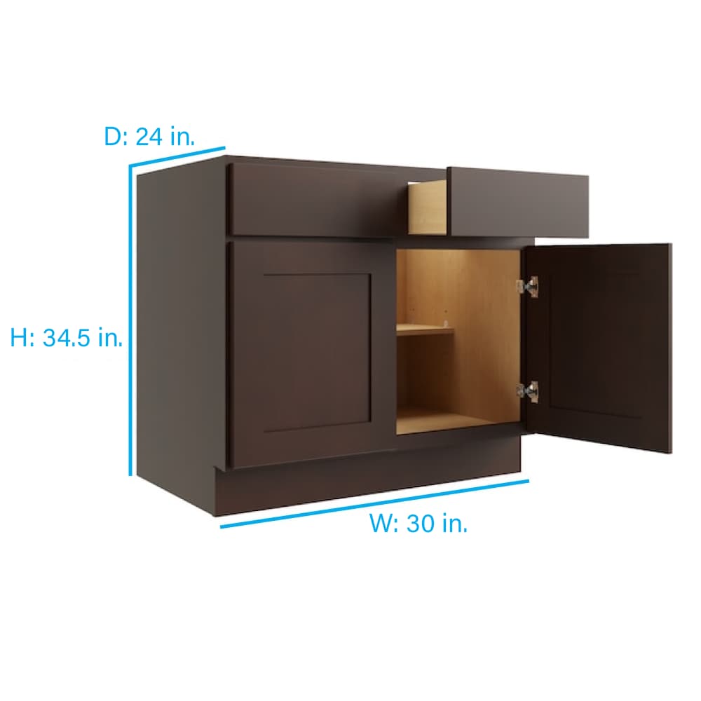 RELIABILT Parkstone 30-in W x 34.5-in H x 24-in D Espresso 2-Drawers Base Fully Assembled Plywood Cabinet (Flat Panel Shaker Style)