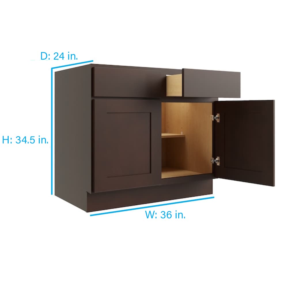Elevate your home with the sleek and sophisticated RELIABILT Parkstone Base Cabinet. Designed in a distinguished Espresso finish, this fully assembled plywood cabinet features a classic flat panel shaker style and premium soft-close functionality for a blend of beauty and practicality.
