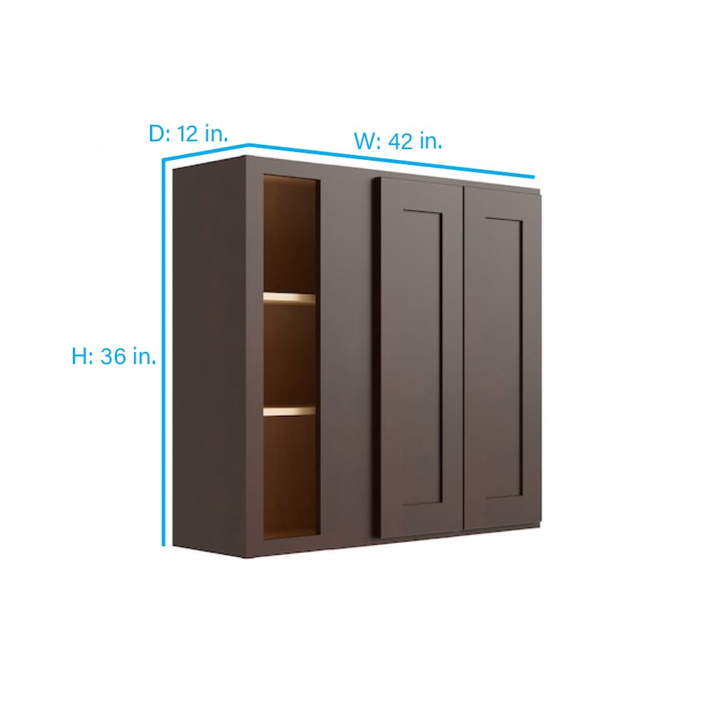 RELIABILT Parkstone 42-in W x 36-in H x 12-in D Espresso Blind Corner Wall Fully Assembled Plywood Cabinet (Shaker Style)