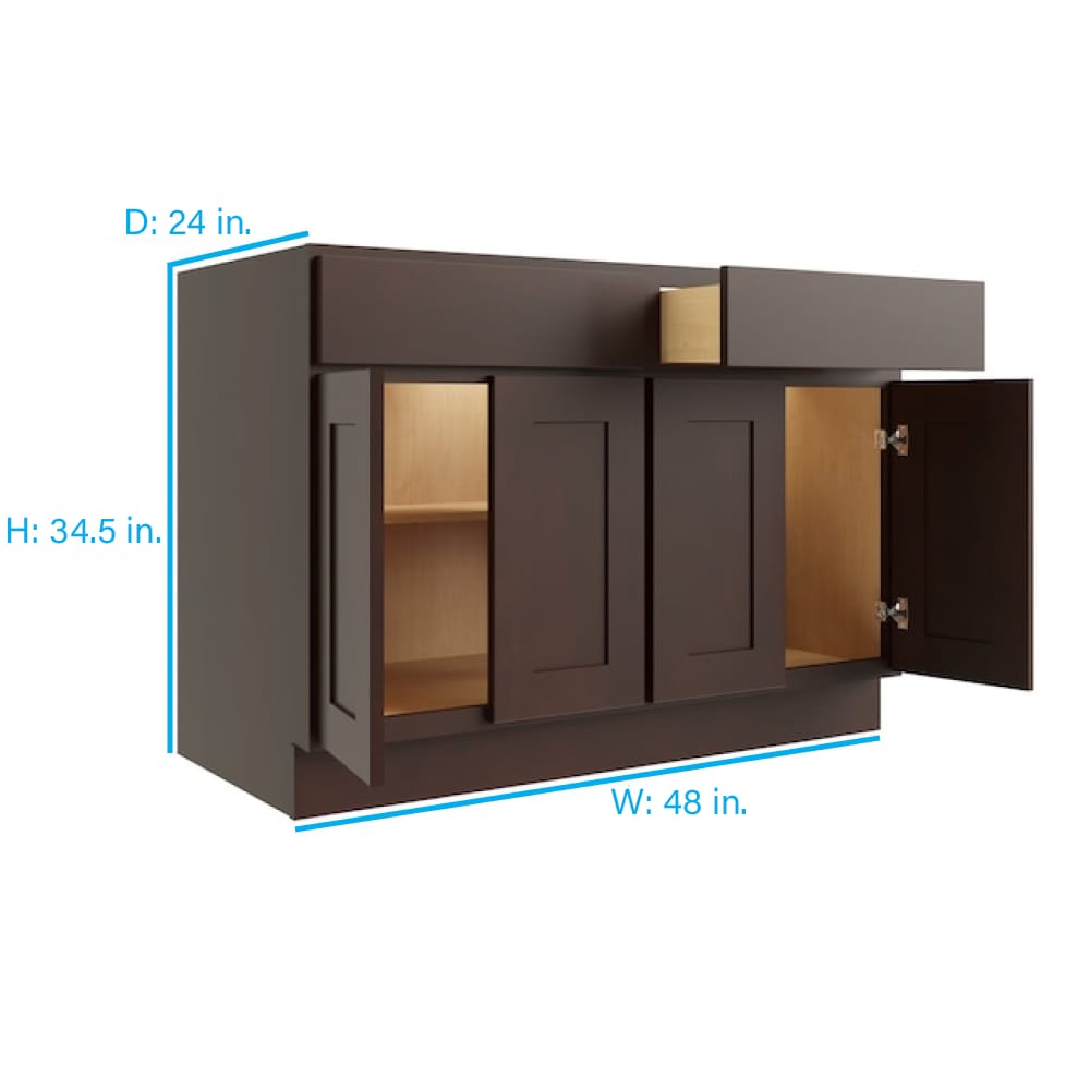 RELIABILT Parkstone 48-in W x 34.5-in H x 24-in D Espresso 2-Drawers Base Fully Assembled Plywood Cabinet (Flat Panel Shaker Style)