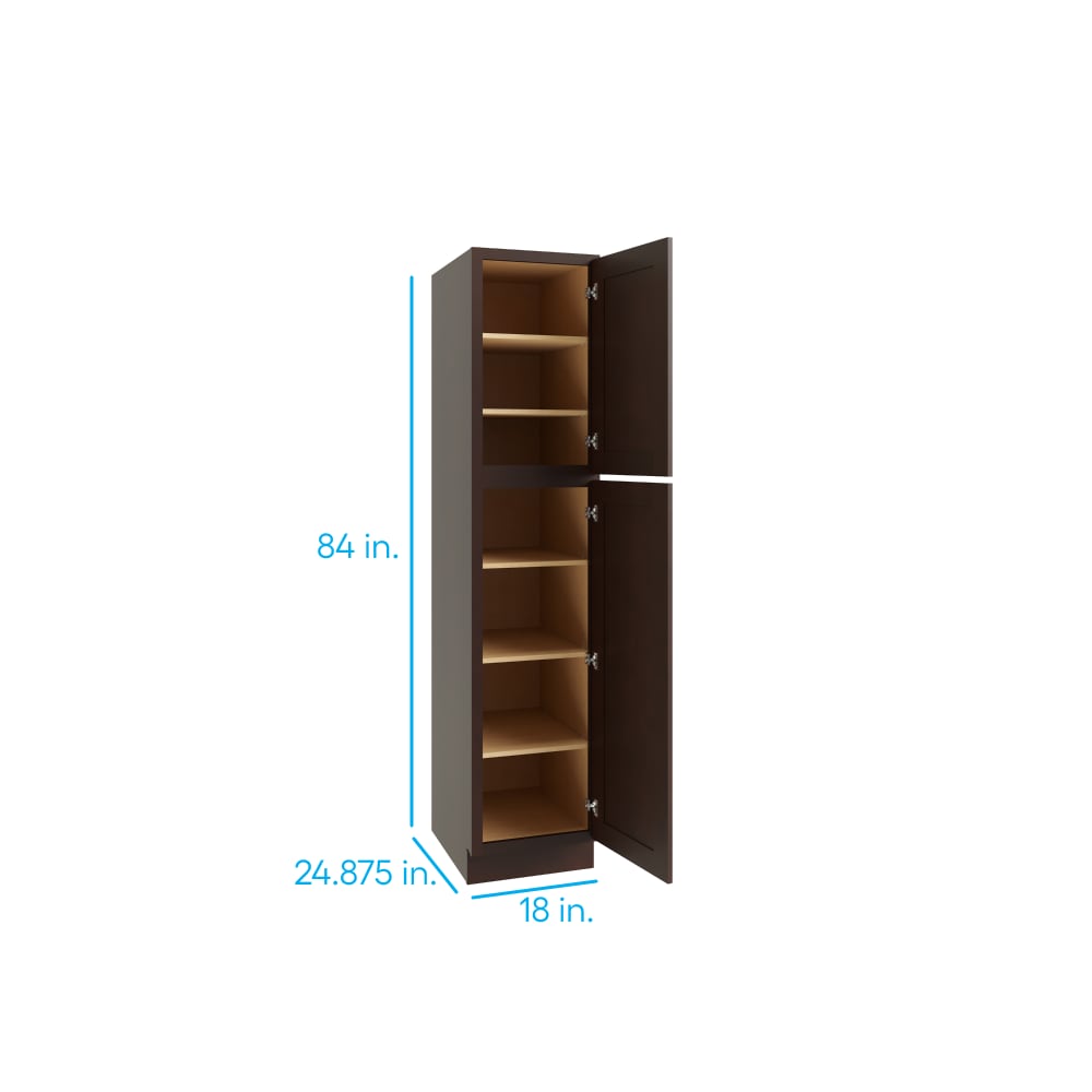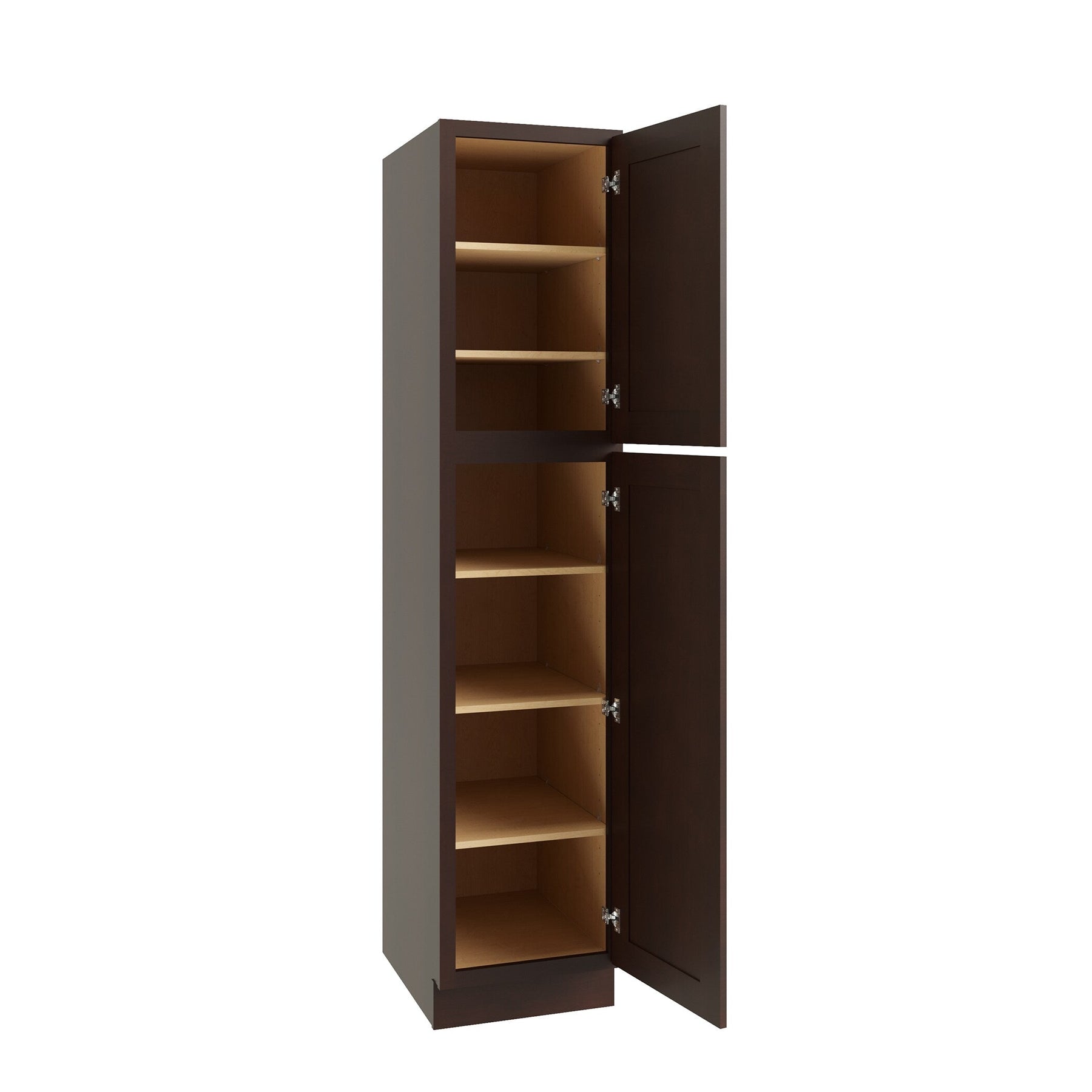 Streamline your space with the RELIABILT Freestanding Wood Utility Storage Cabinet. With its espresso shaker-style finish and full plywood construction, this cabinet brings both durability and elegant simplicity to any room in your home. Enjoy hassle-free installation and versatile storage with adjustable shelves and soft-close hinges, making it perfect for kitchens, bathrooms, and living areas.