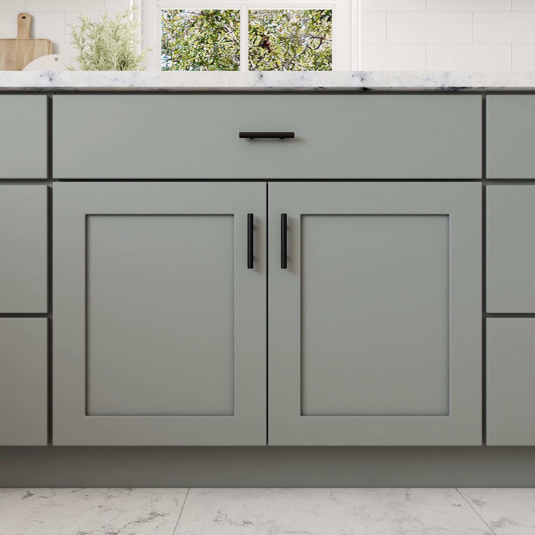 • Design: Shaker style with a matte gray finish offers a contemporary yet timeless look.