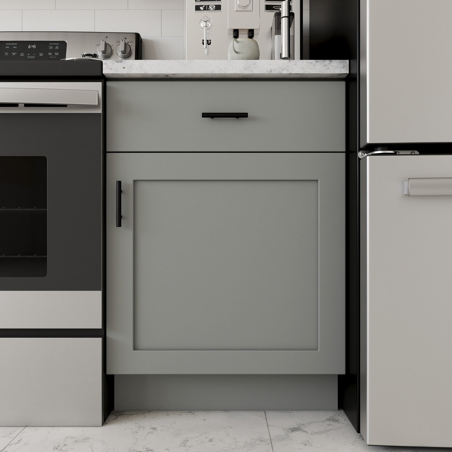 RELIABILT Overlake 36-in W x 34.5-in H x 24-in D Gray 1-Drawer Base Ready To Assemble Plywood Cabinet (Recessed Panel Shaker Door Style)