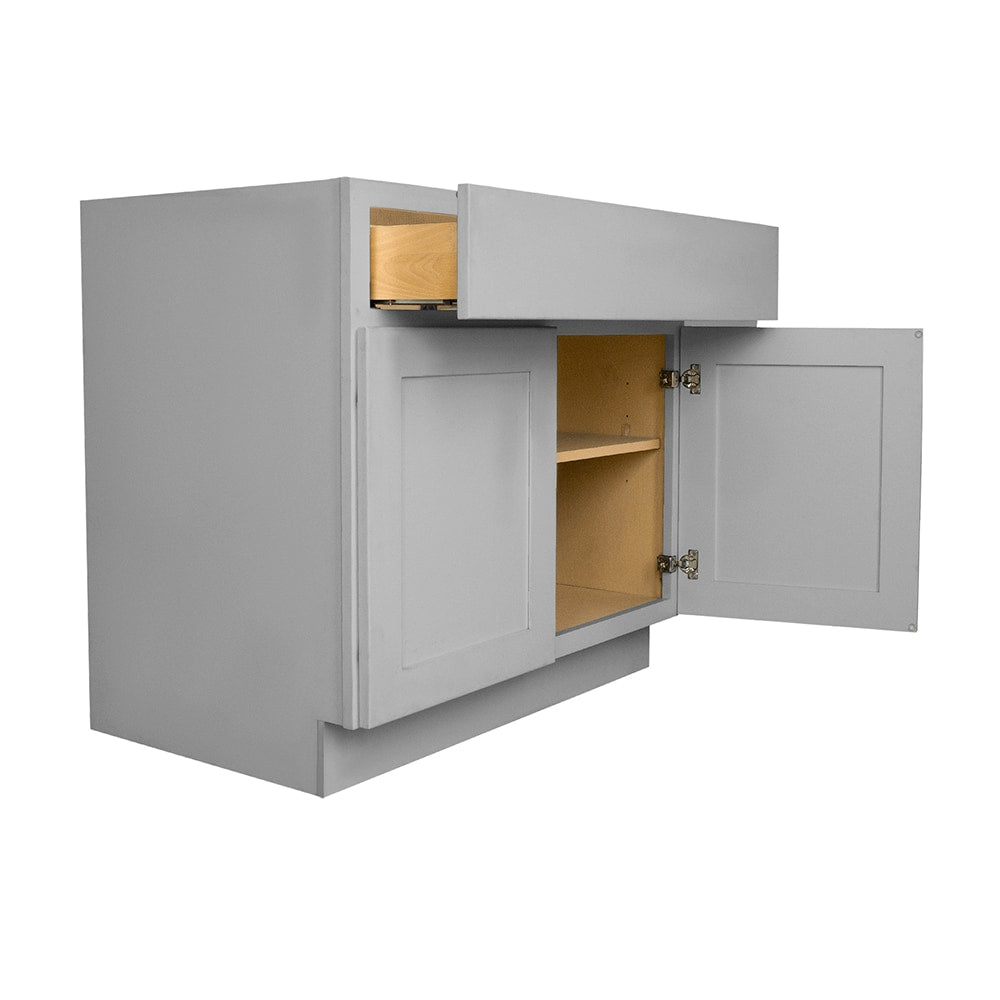 The Overlake Gray Shaker Base Cabinet is an exemplar of understated luxury, effortlessly blending into any kitchen or utility room. Its sleek matte gray finish with a classic recessed panel adds a touch of sophistication, while its robust construction speaks to its dependable nature. Style it with brass hardware for a pop of warmth or with minimalist handles for a modern edge. This cabinet is not just a storage unit but a pivotal piece in creating a luxurious, organized living environment.