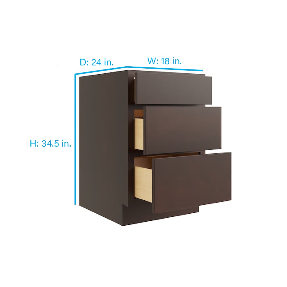 RELIABILT Parkstone 18-in W x 34.5-in H x 24-in D Espresso 3-Drawer Base Fully Assembled Plywood Cabinet (Flat Panel Style)