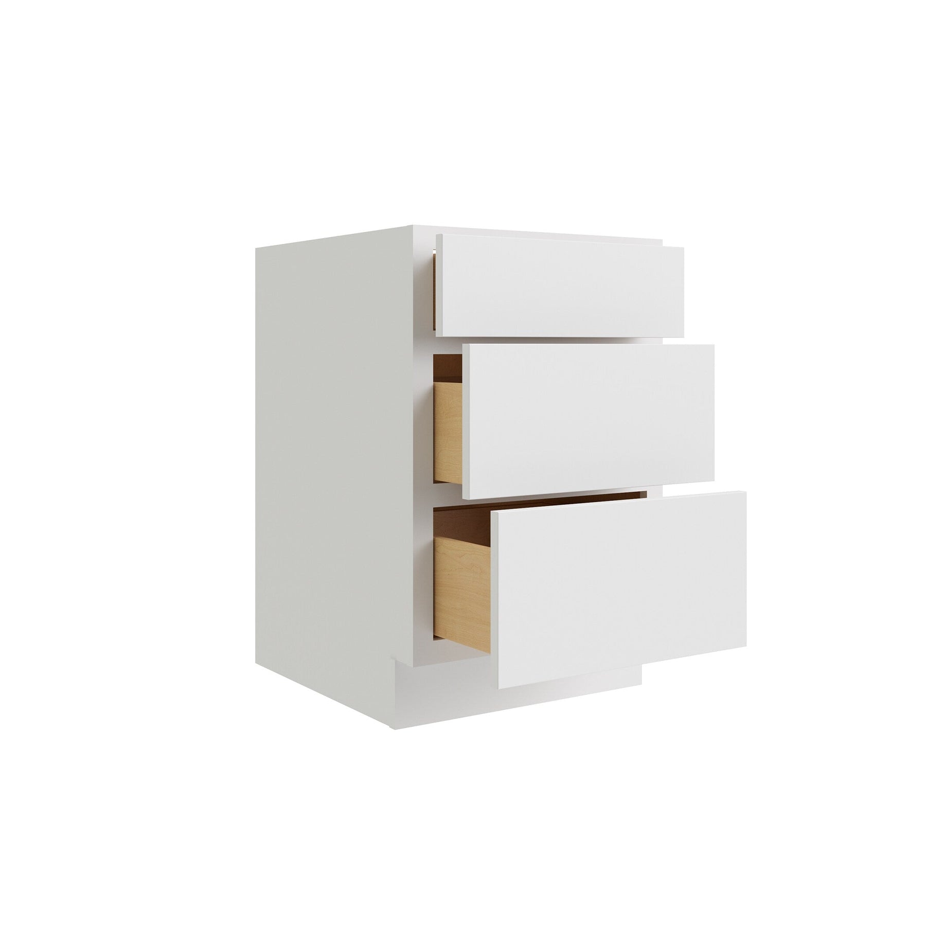 RELIABILT Parkstone 18-in W x 34.5-in H x 24-in D White 3-Drawer Base Fully Assembled Plywood Cabinet (Flat Panel Style)