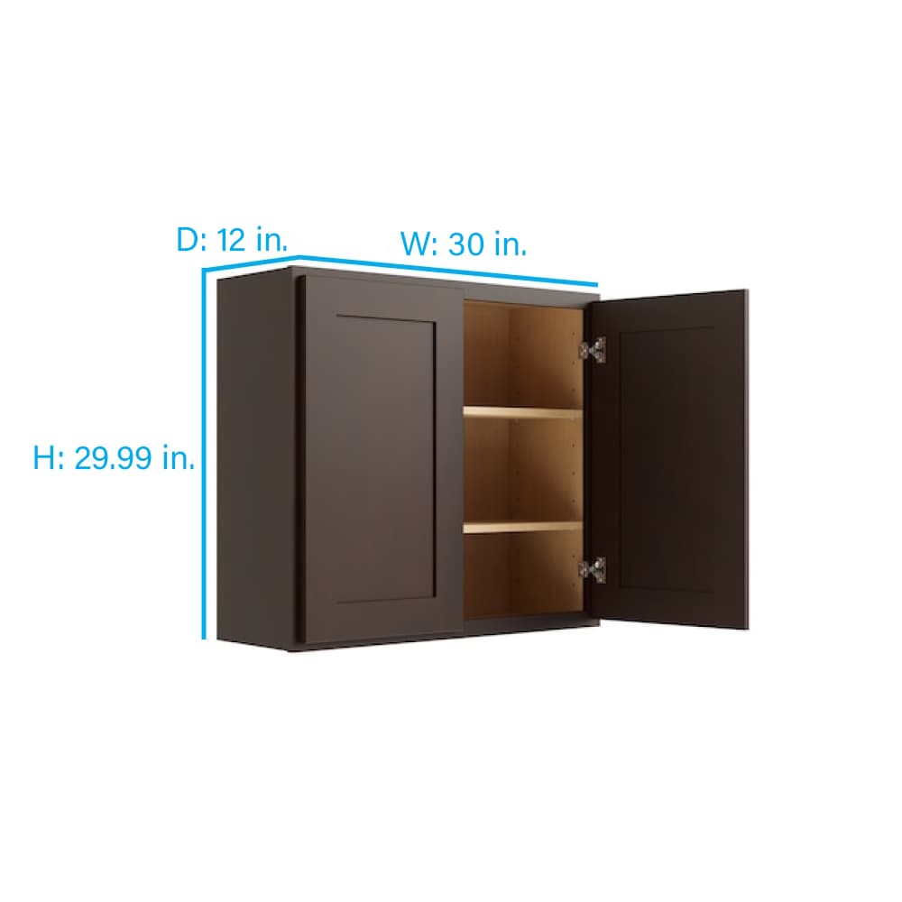 RELIABILT Parkstone 30-in W x 30-in H x 12-in D Espresso Wall Fully Assembled Plywood Cabinet (Shaker Door Style)