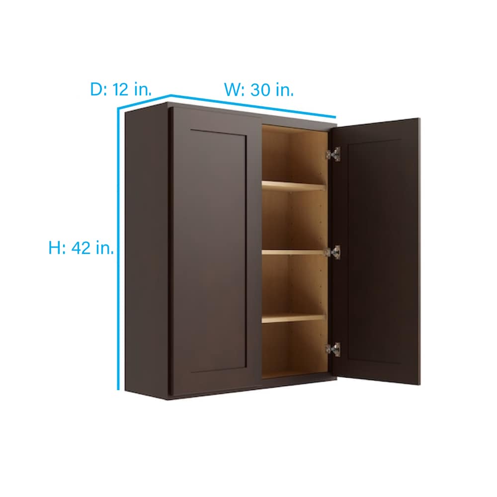 RELIABILT Parkstone 30-in W x 42-in H x 12-in D Espresso Wall Fully Assembled Plywood Cabinet (Shaker Door Style)