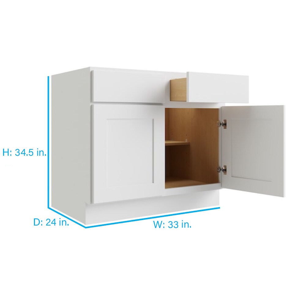 RELIABILT Parkstone 33-in W x 34.5-in H x 24-in D White 2-Drawers Base Fully Assembled Plywood Cabinet (Flat Panel Shaker Style)
