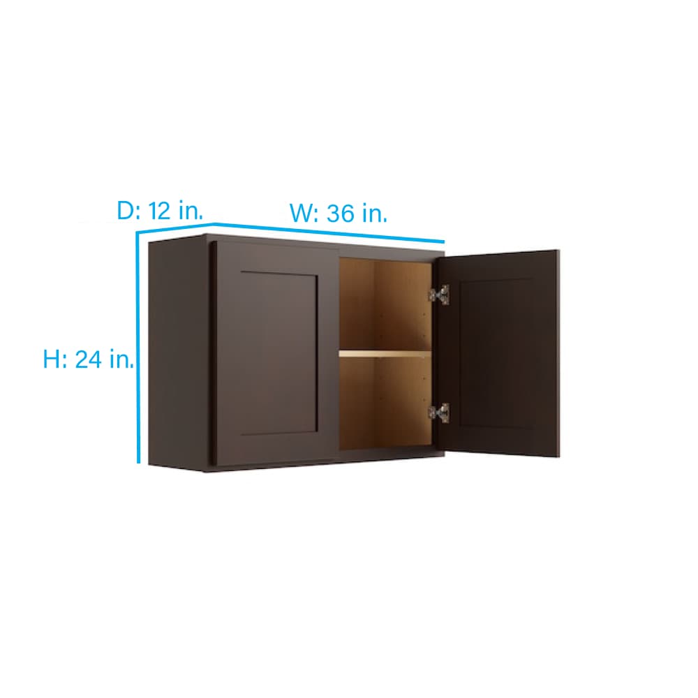 RELIABILT Parkstone 36-in W x 24-in H x 12-in D Espresso Wall Fully Assembled Plywood Cabinet (Shaker Door Style)