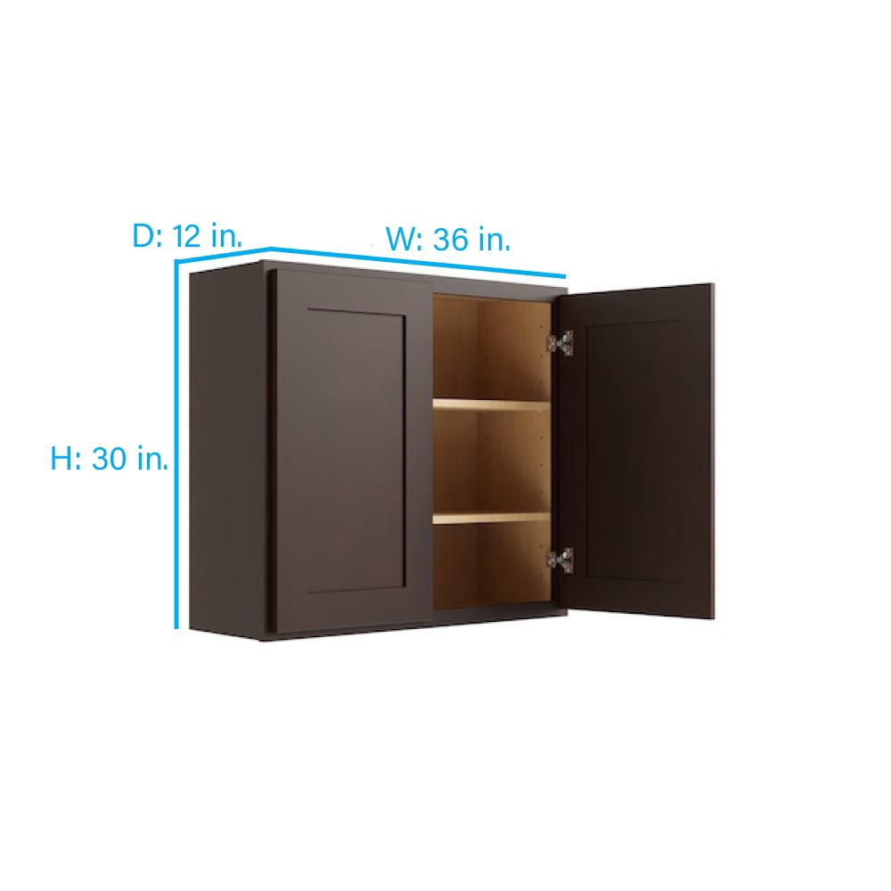 RELIABILT Parkstone 36-in W x 30-in H x 12-in D Espresso Wall Fully Assembled Plywood Cabinet (Shaker Door Style)
