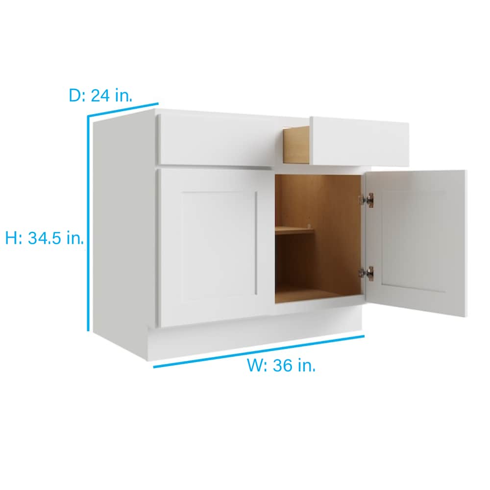 RELIABILT Parkstone 36-in W x 34.5-in H x 24-in D White 2-Drawers Base Fully Assembled Plywood Cabinet (Flat Panel Shaker Style)