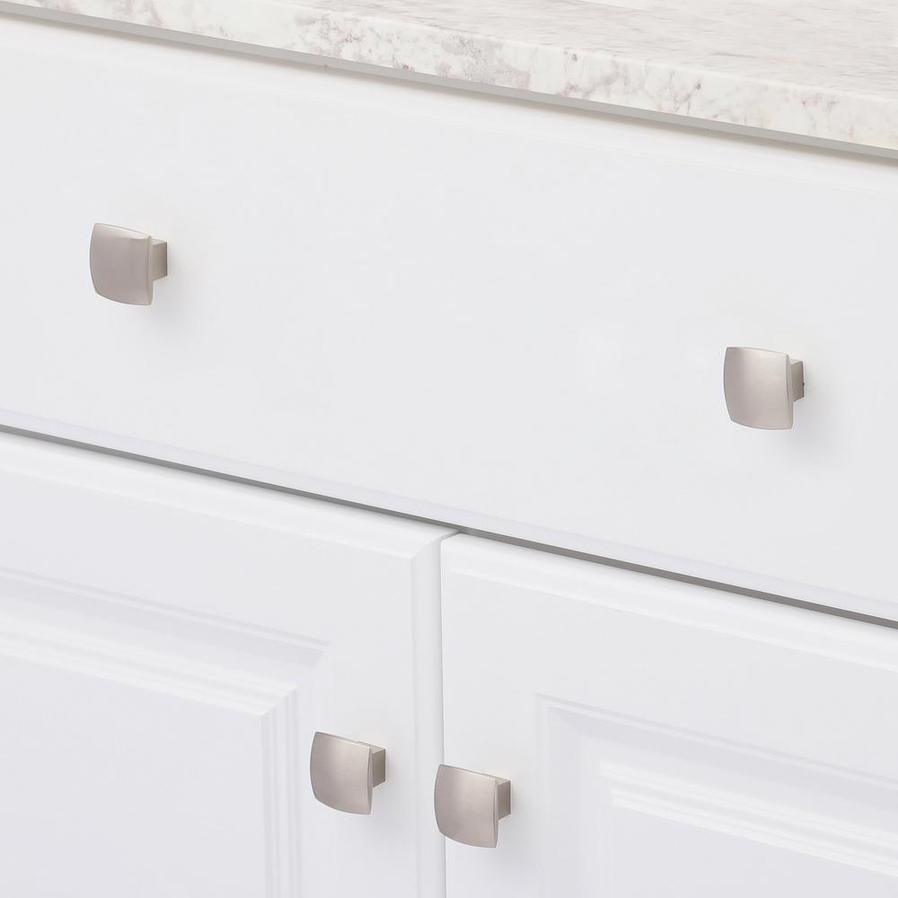 Upgrade cabinets with this soft-square knob in a warm satin nickel finish. Compact 1-1/2 in. profile offers a comfortable grip and a clean, modern look suited for kitchens, baths, and furniture.
