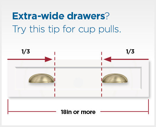A: For drawers 18 in. or wider, consider using two cup pulls spaced at the left and right thirds.