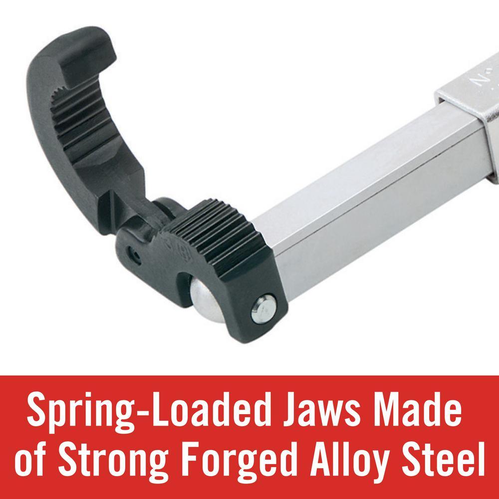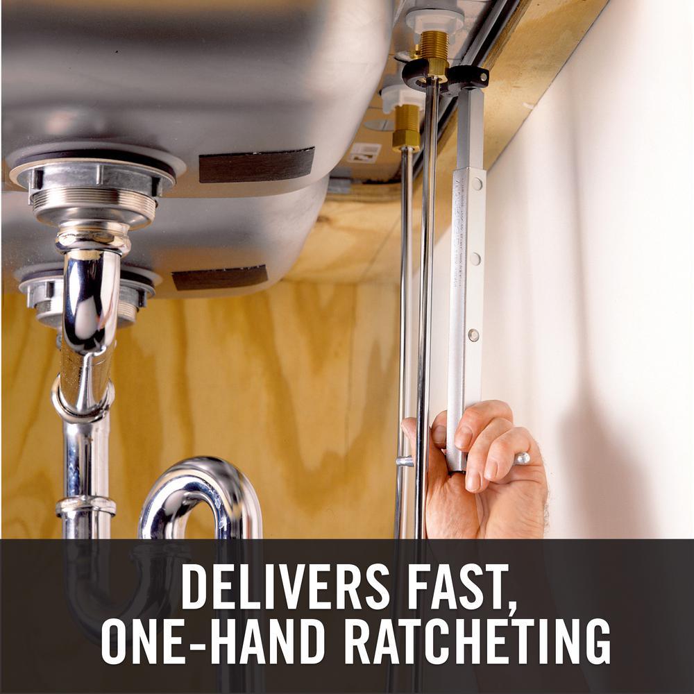 • Basin wrench's spring-loaded jaws are made of tough forged alloy steel and provide fast, one-hand ratcheting