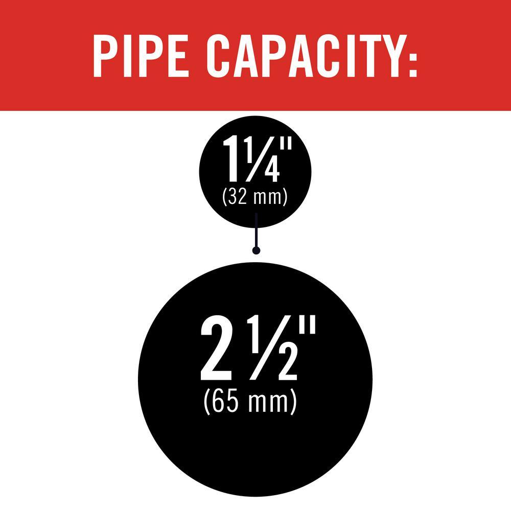 Maximum pipe size capacity (in.) 2.5