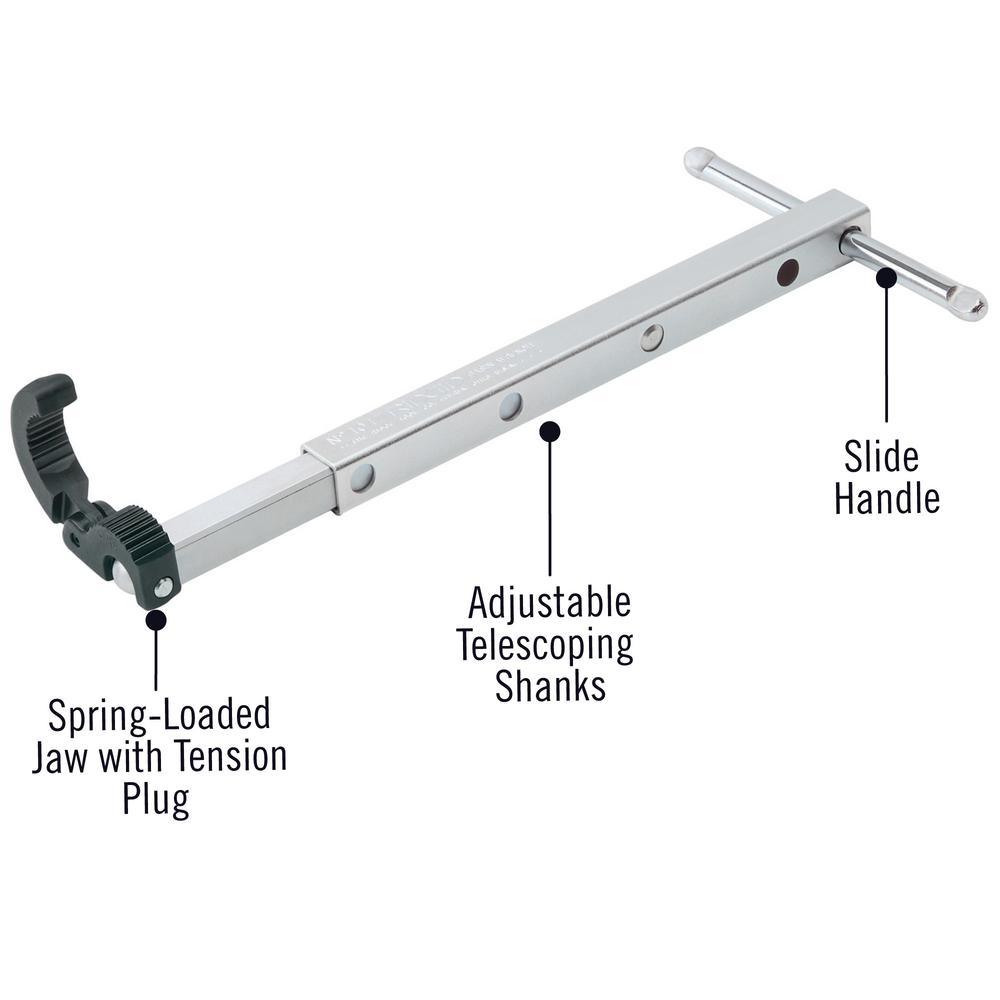 • Telescopic basin wrench has a 1-1/4 in. to 2-1/2 in. pipe capacity