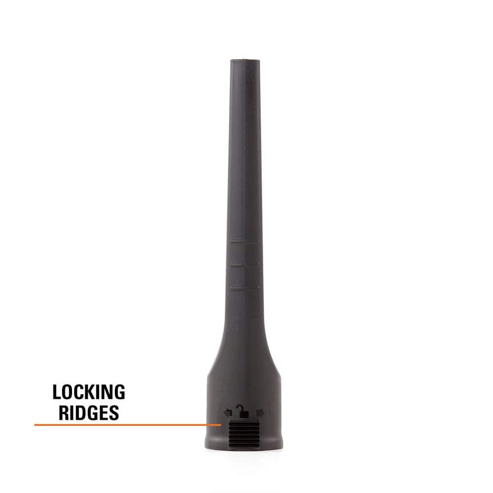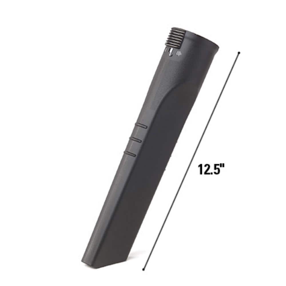 Slim, 12.25-inch crevice tool designed to lock onto 2-1/2 in. RIDGID wet/dry vacuum hoses and wands for uninterrupted cleaning. Perfect for reaching deep, tight spaces in vehicles, workshops, and around machinery.